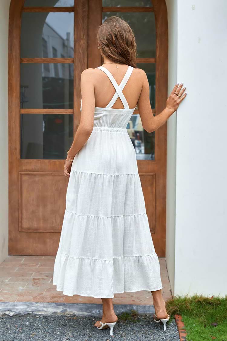 Irena Square Neck Tie A-Shape Dress
