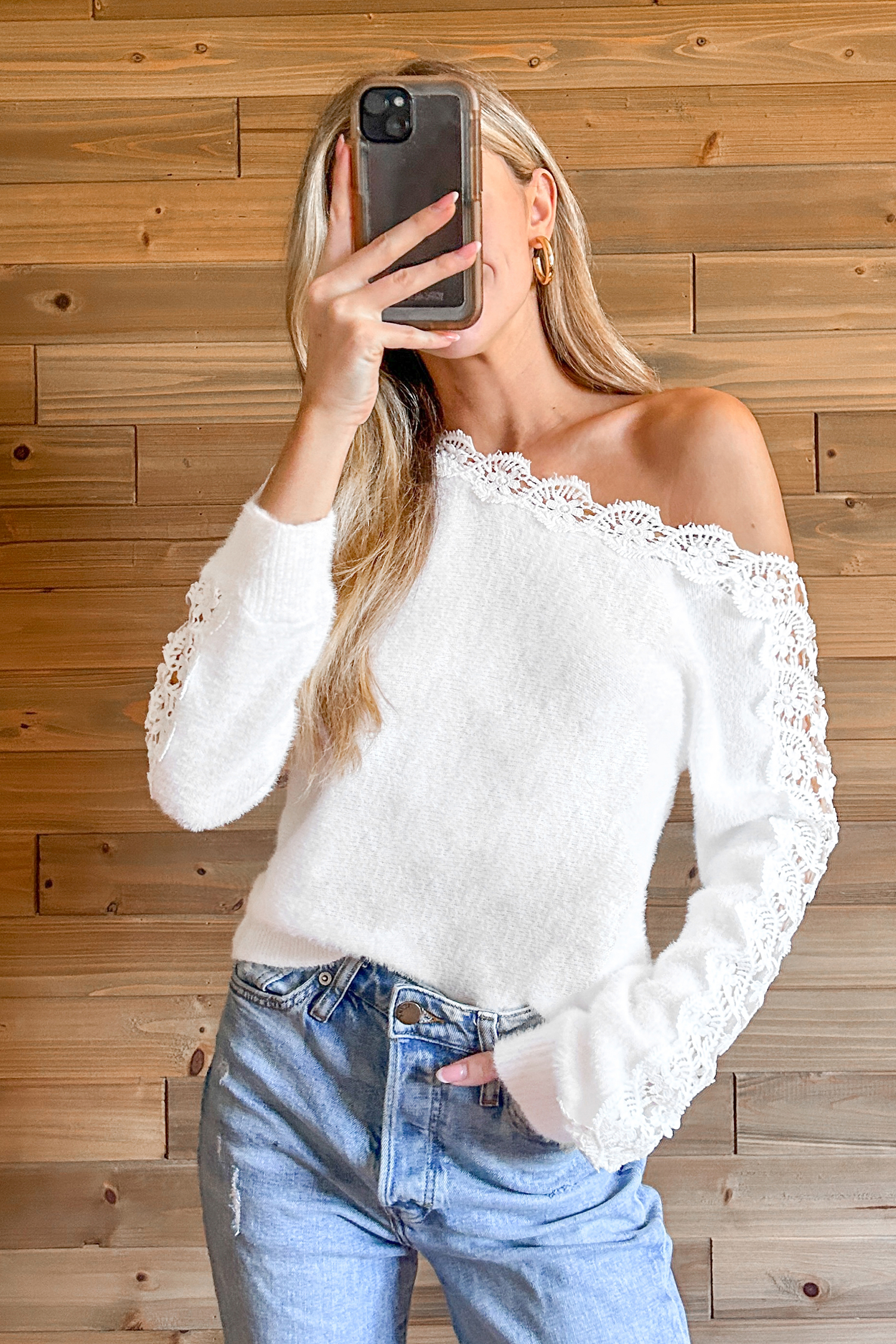 Ivory Scalloped Lace Sweater