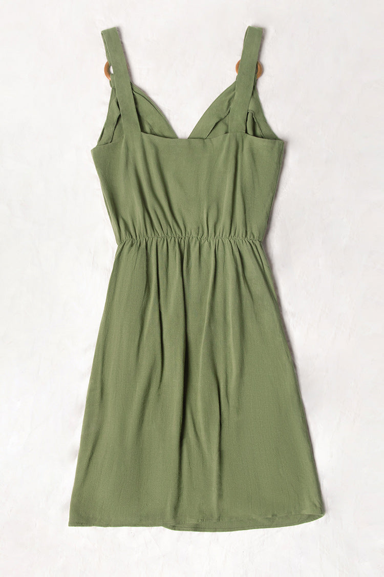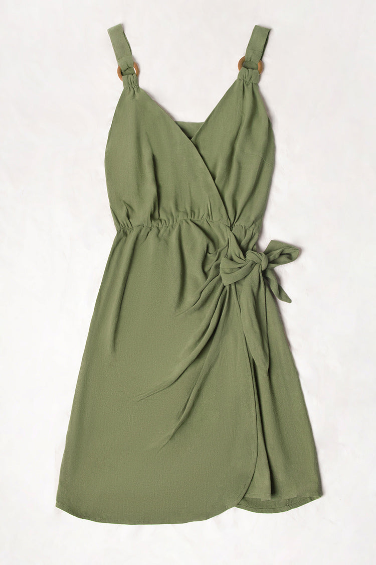 HomeJeanette Green O-ring Wrap Tie Waist Dress