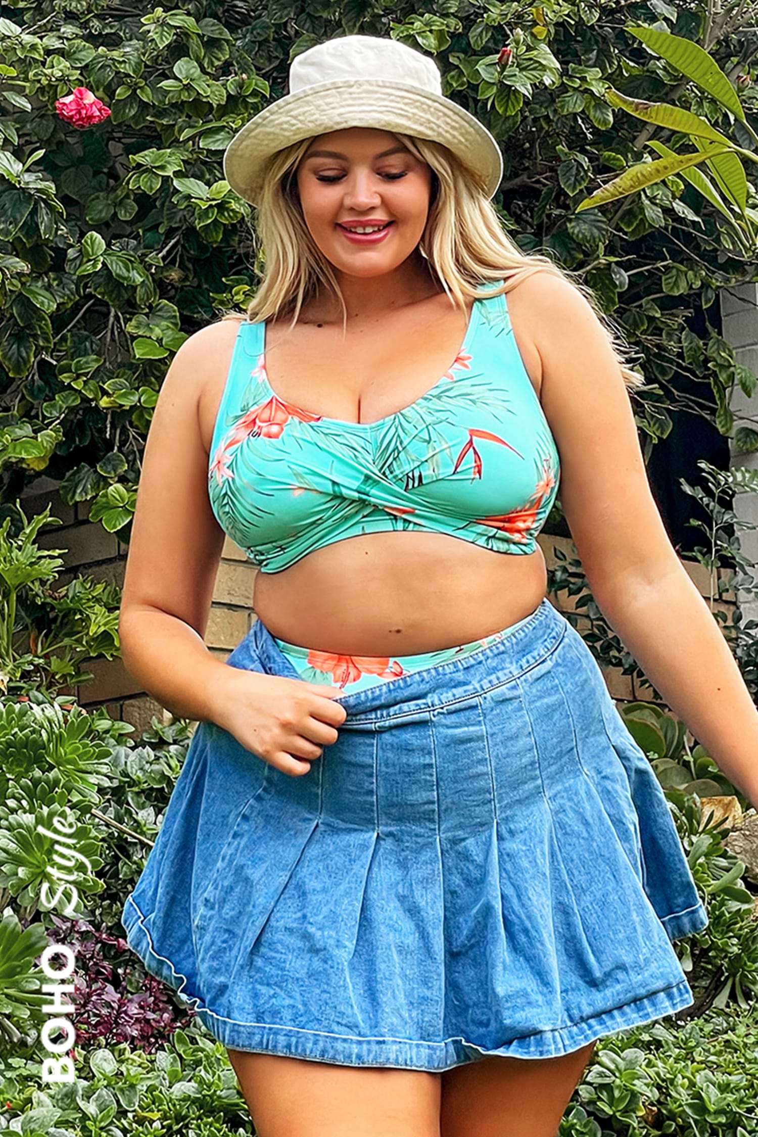 Jungle Flowers Twist Bralette Hipster Tummy Control Plus Size Set