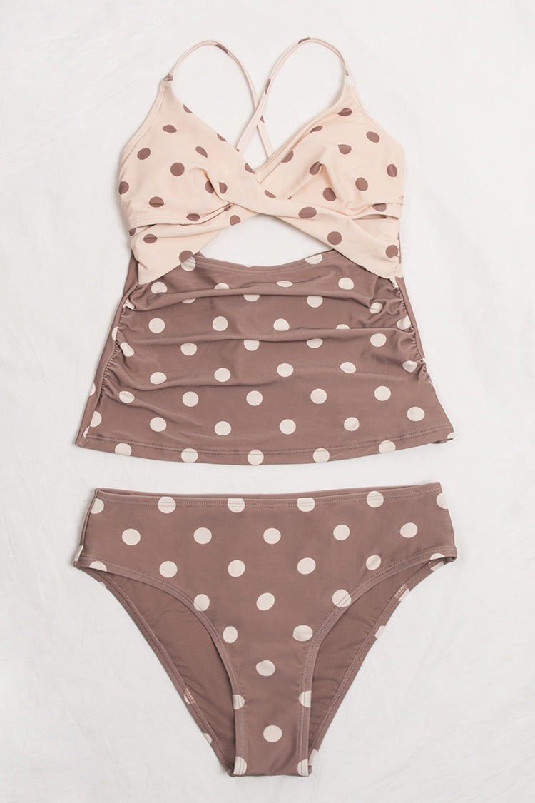 Kaylyn Polka Dot Criss Cross Back Tie Tankini