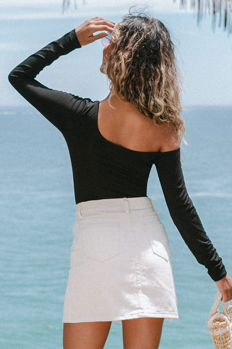 Keeley Black One Shoulder Long Sleeve Bodysuit