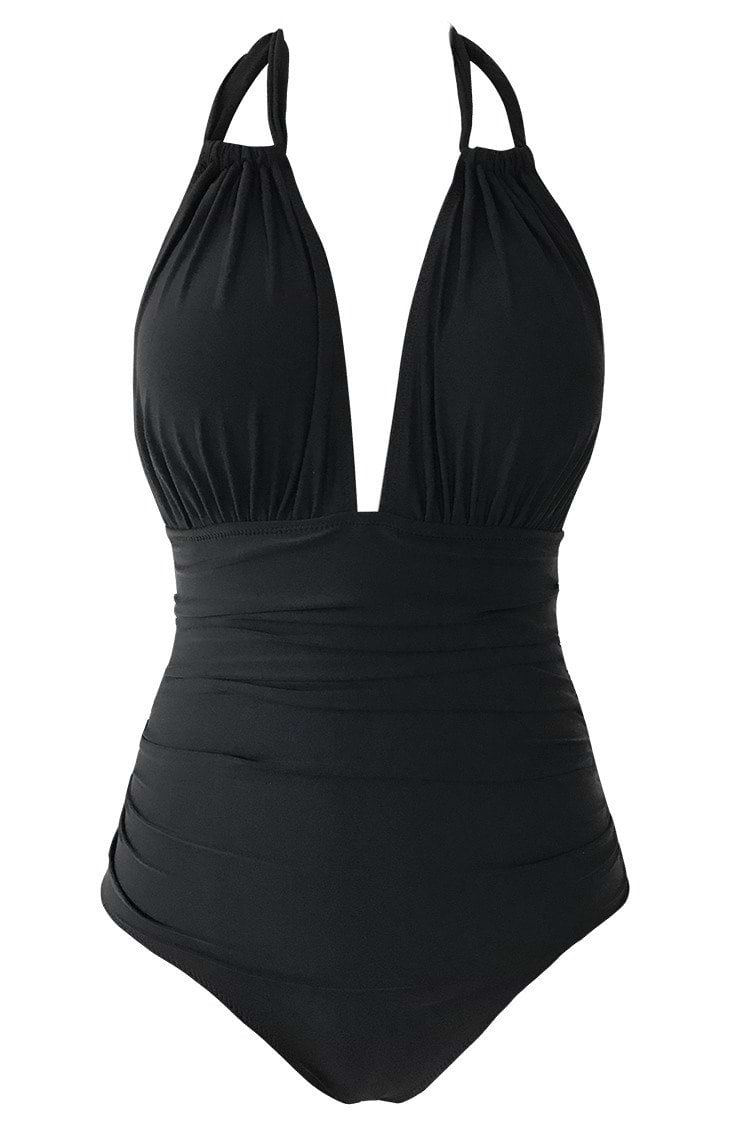 Keep Secrets Black Halter OneTummy Control piece Swimsuit