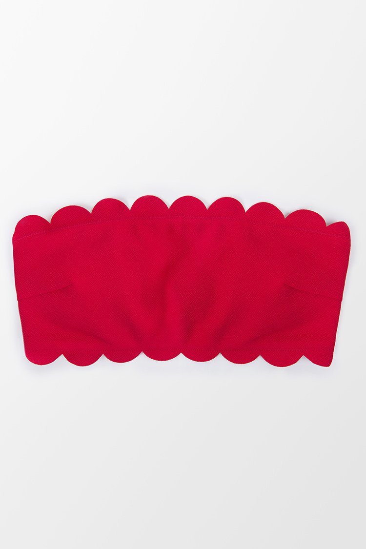 HomeKensley Red Scalloped Bandeau Bikini Top