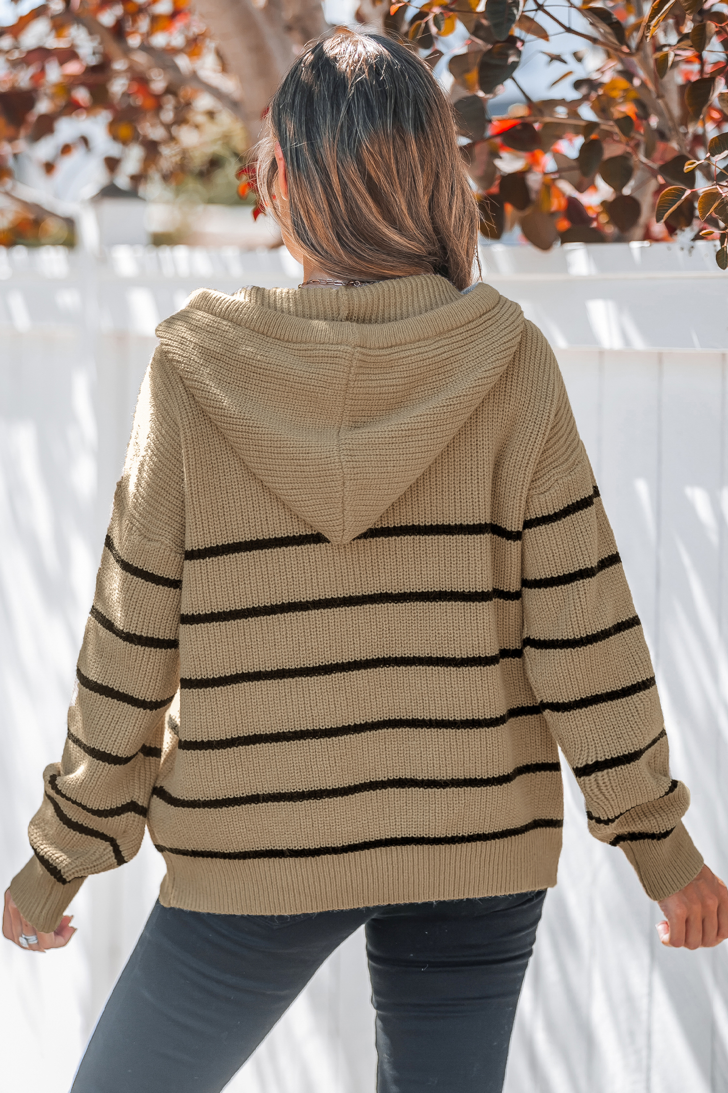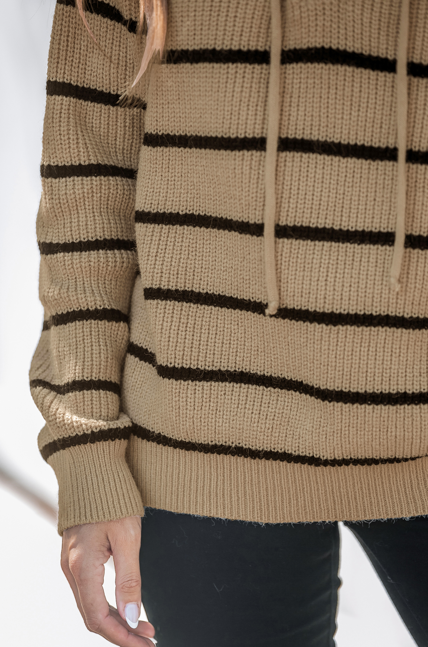 Khaki & Black Striped Hooded Long Sleeve Sweater