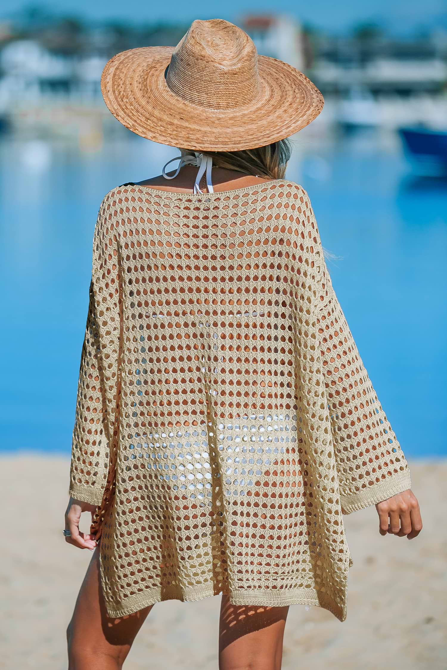 HomeKhaki Long Sleeve Cutout Mini Cover-Up