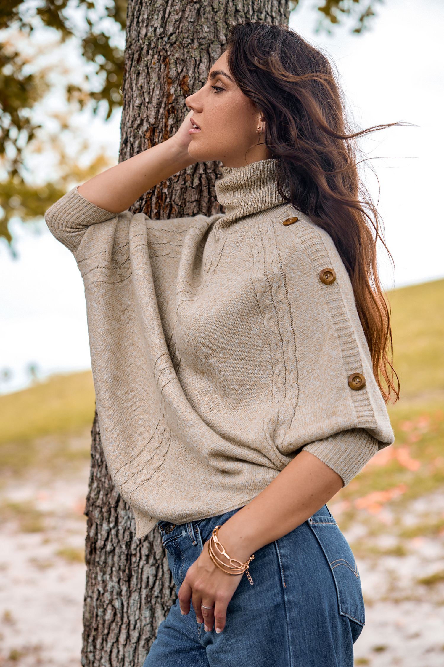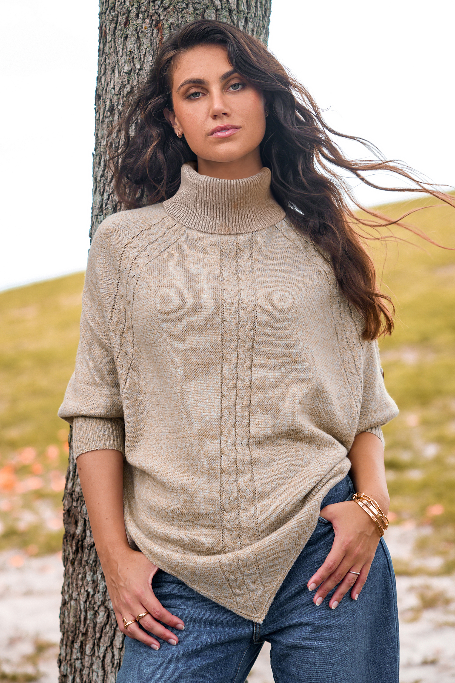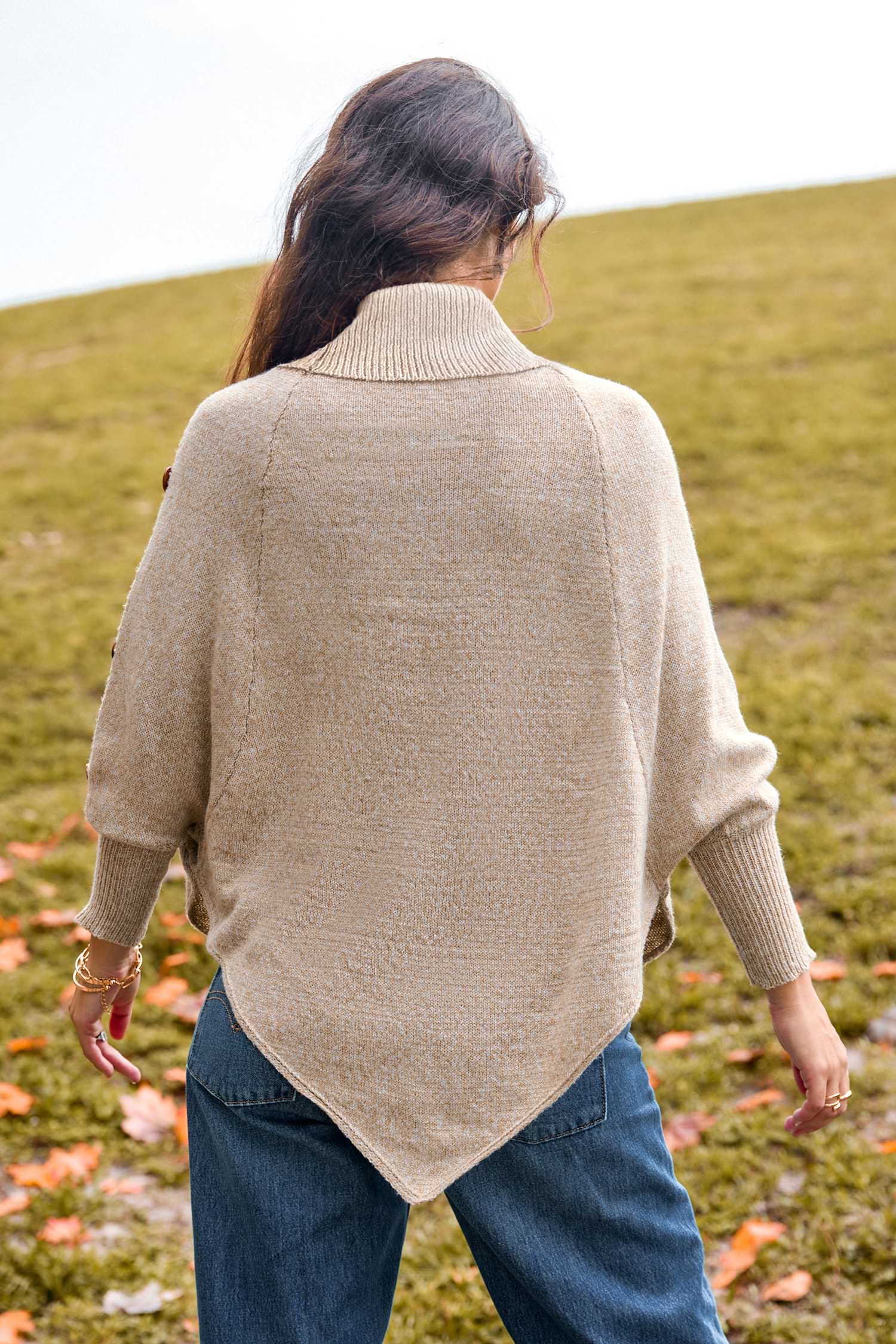 HomeKhaki Turtleneck Dolman Sleeve Asymmetrical Hem Sweater