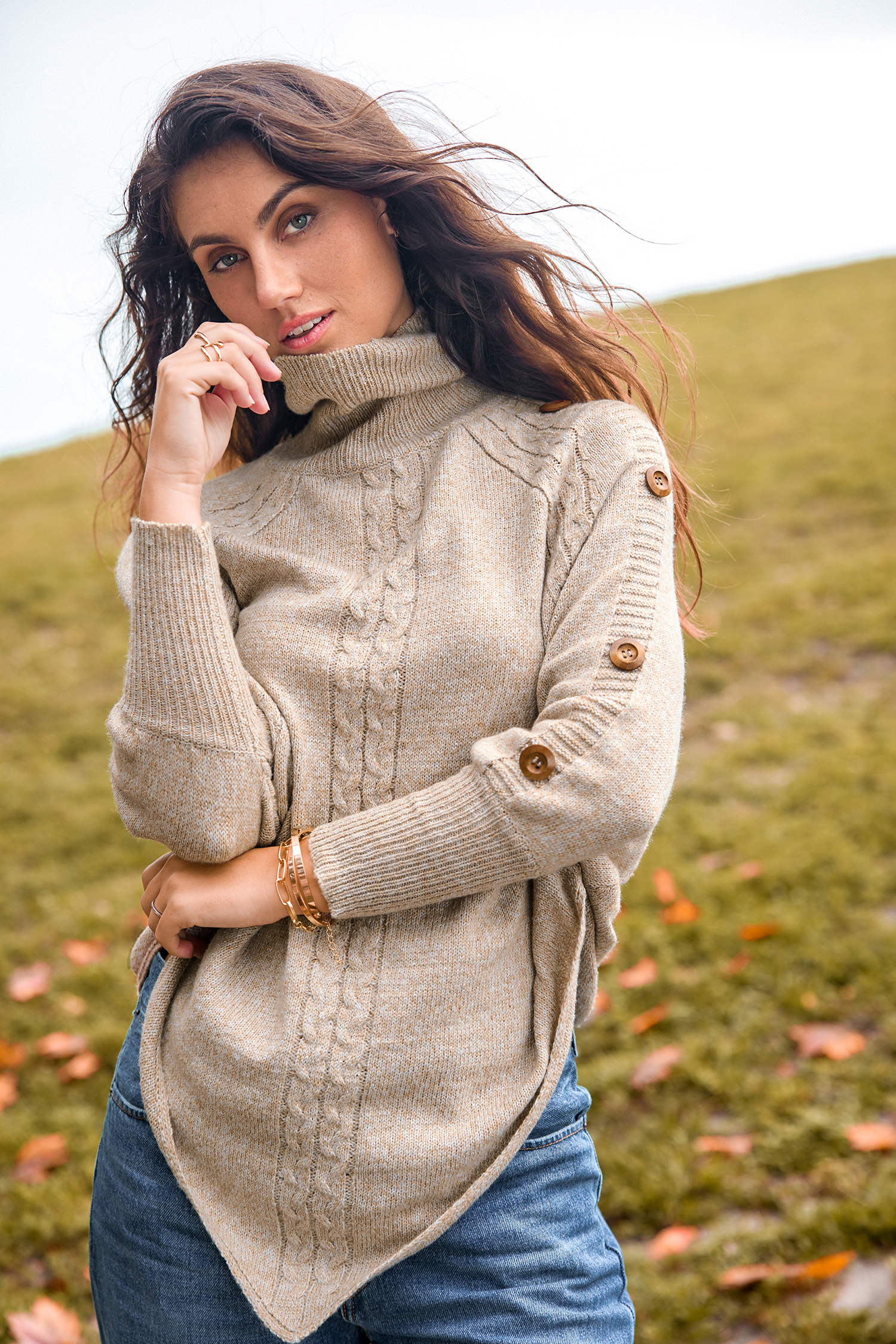 Khaki Turtleneck Dolman Sleeve Asymmetrical Hem Sweater