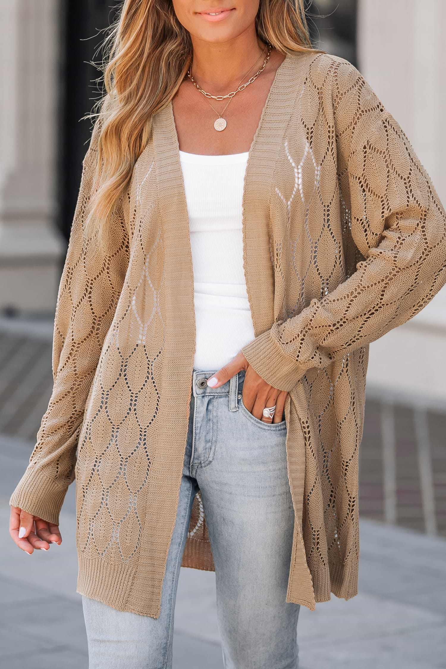 HomeLatte Textured Knit Cutout Open-Front Cardigan