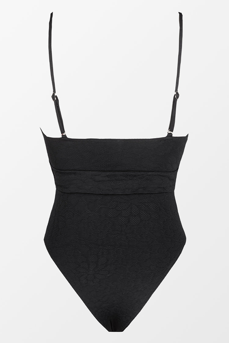 HomeLauren Belted Bandeau Black One Piece Swimsuit