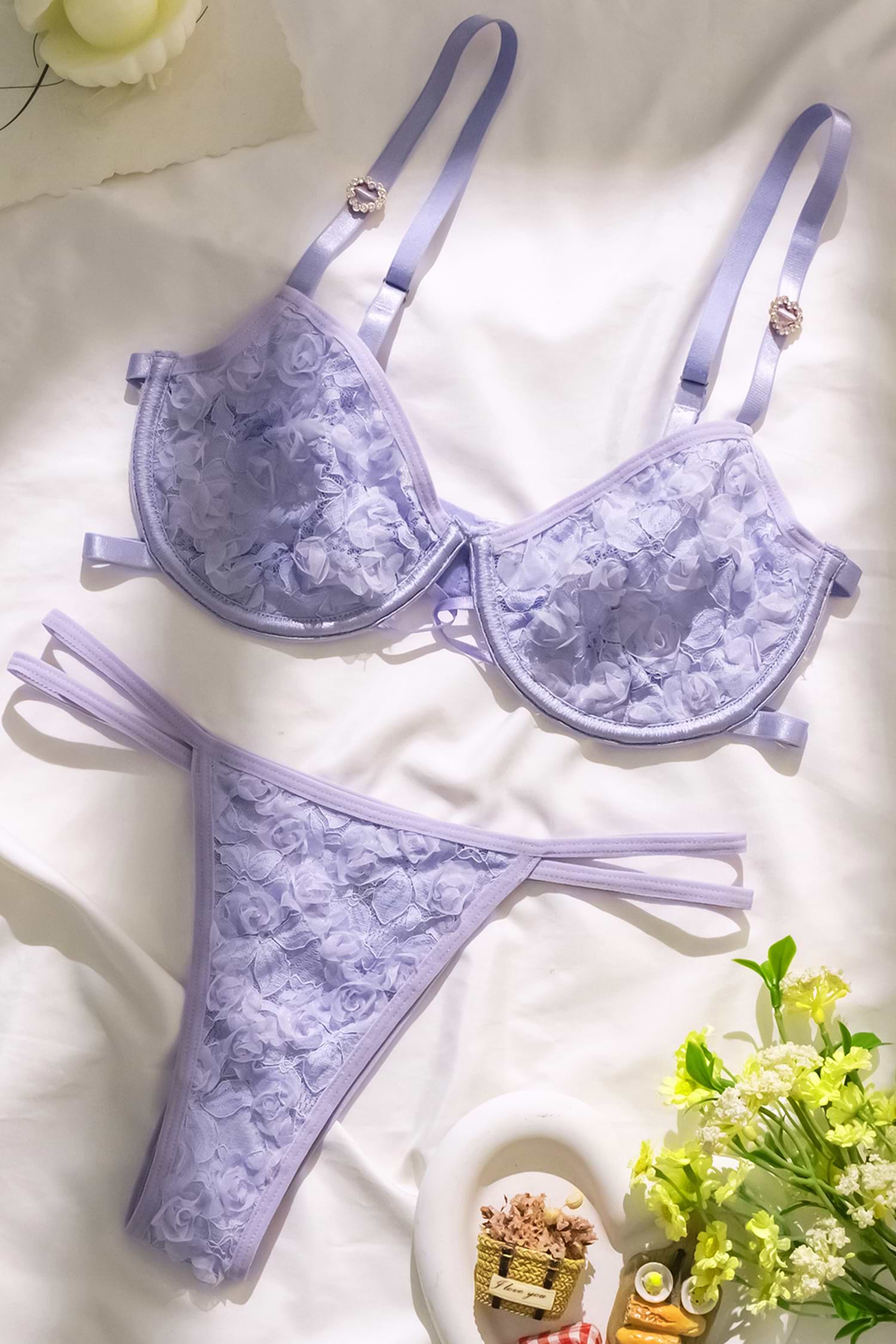 Lavender Floral Lace Lingerie Set