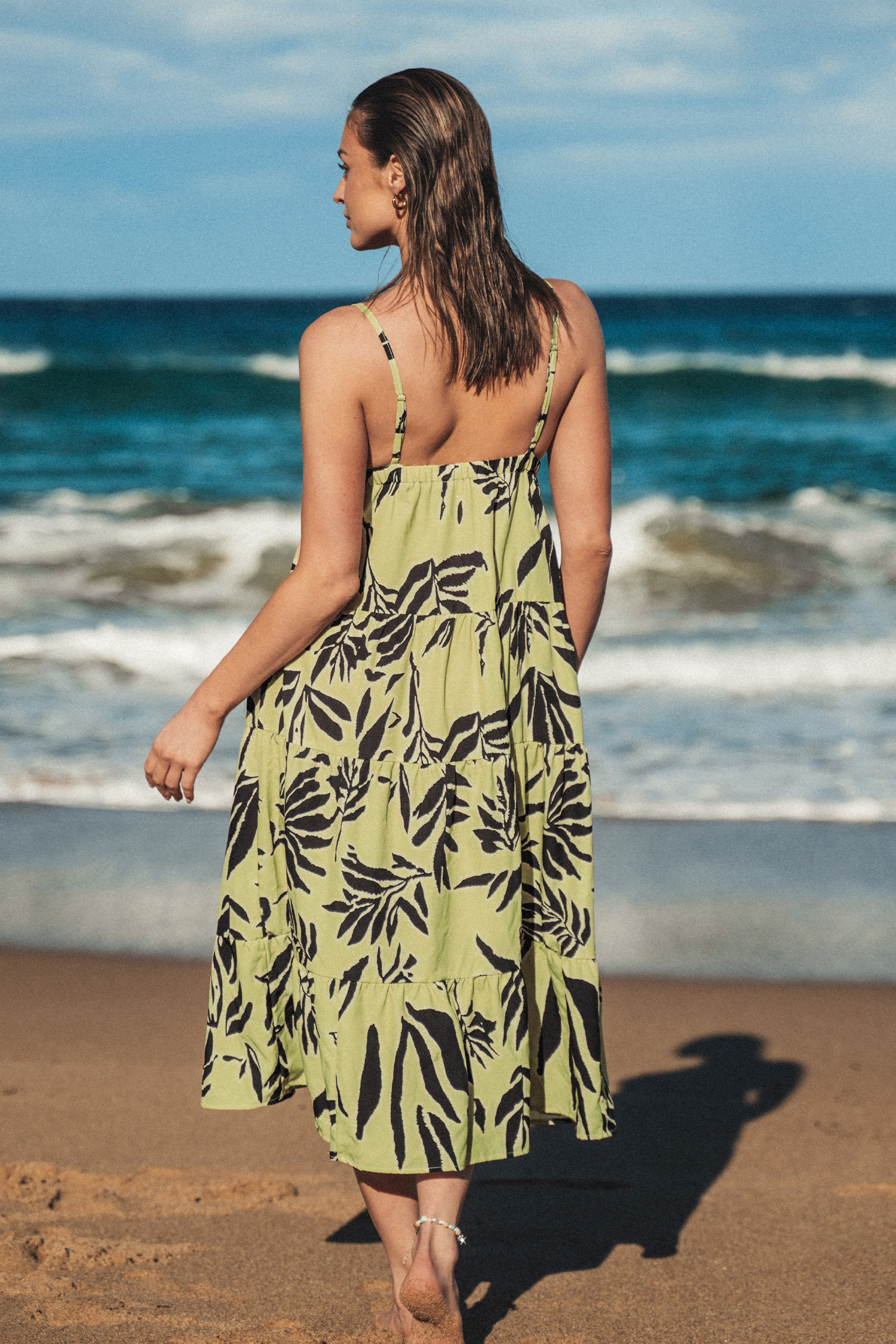Leaf Print V-Neck Cami Maxi Dress