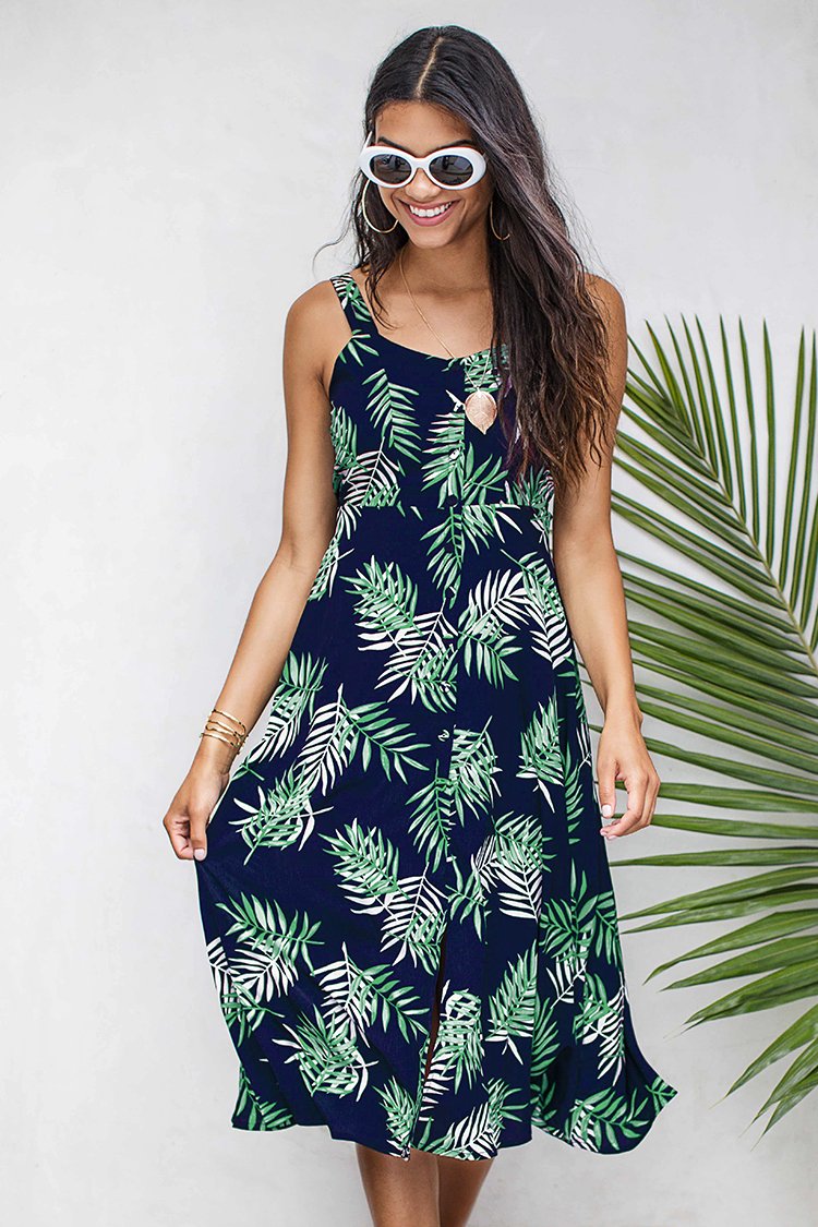 HomeLeafy Print Vest Dress