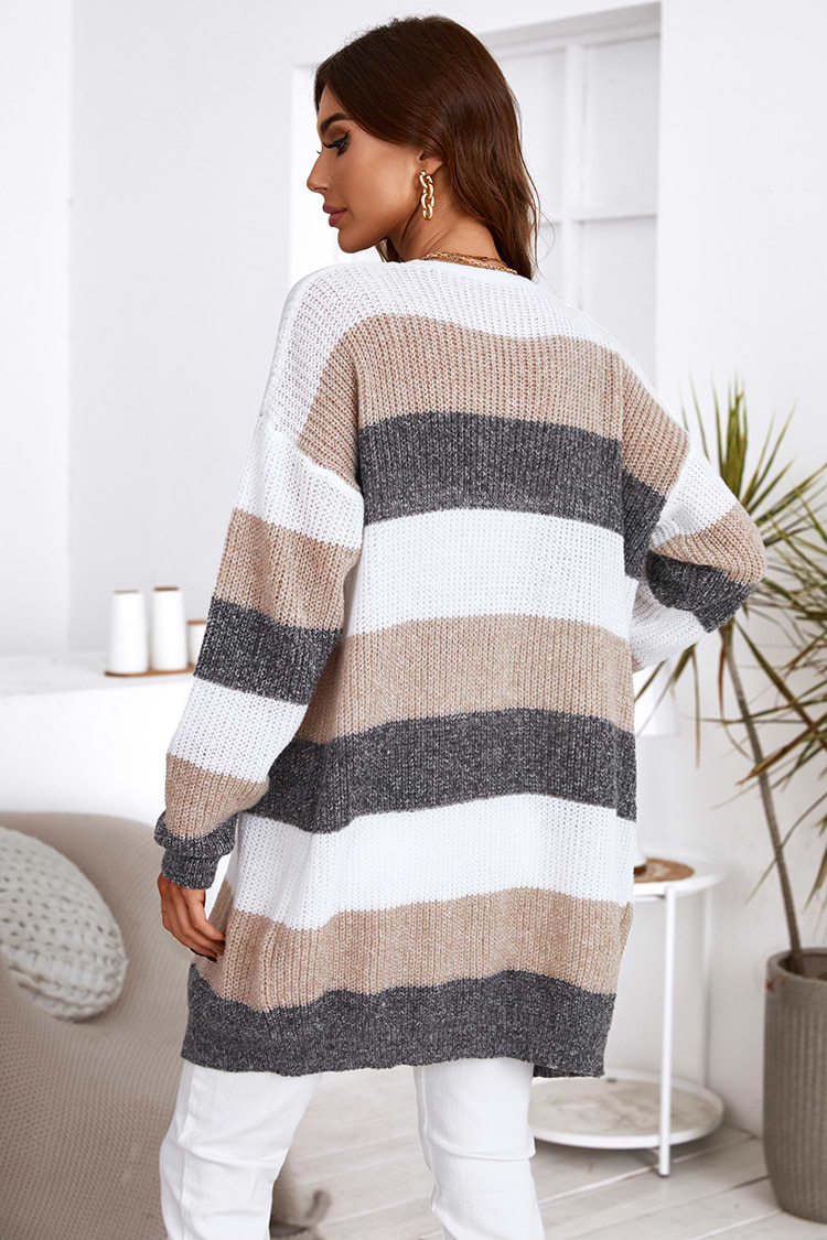 Leah Striped Open-Front Longline Cardigan