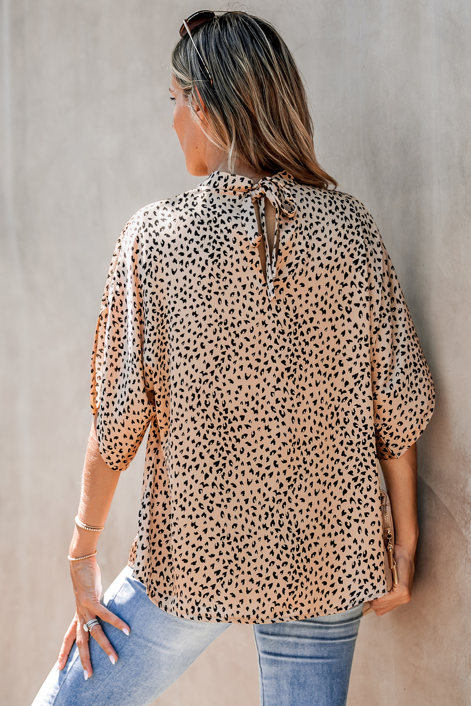 Leopard Print Back Tie Blouse