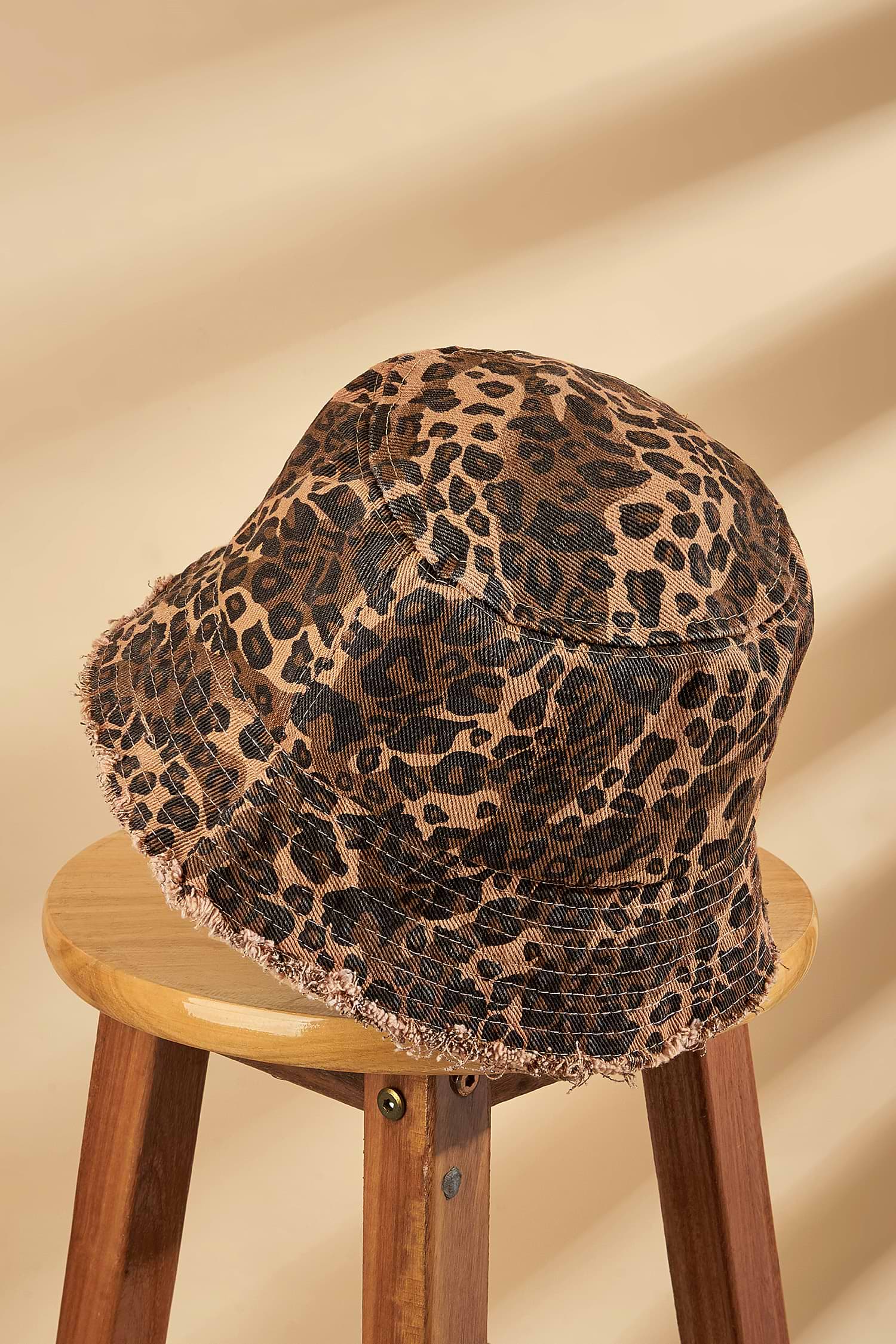 Leopard Print Frayed Trim Bucket Hat