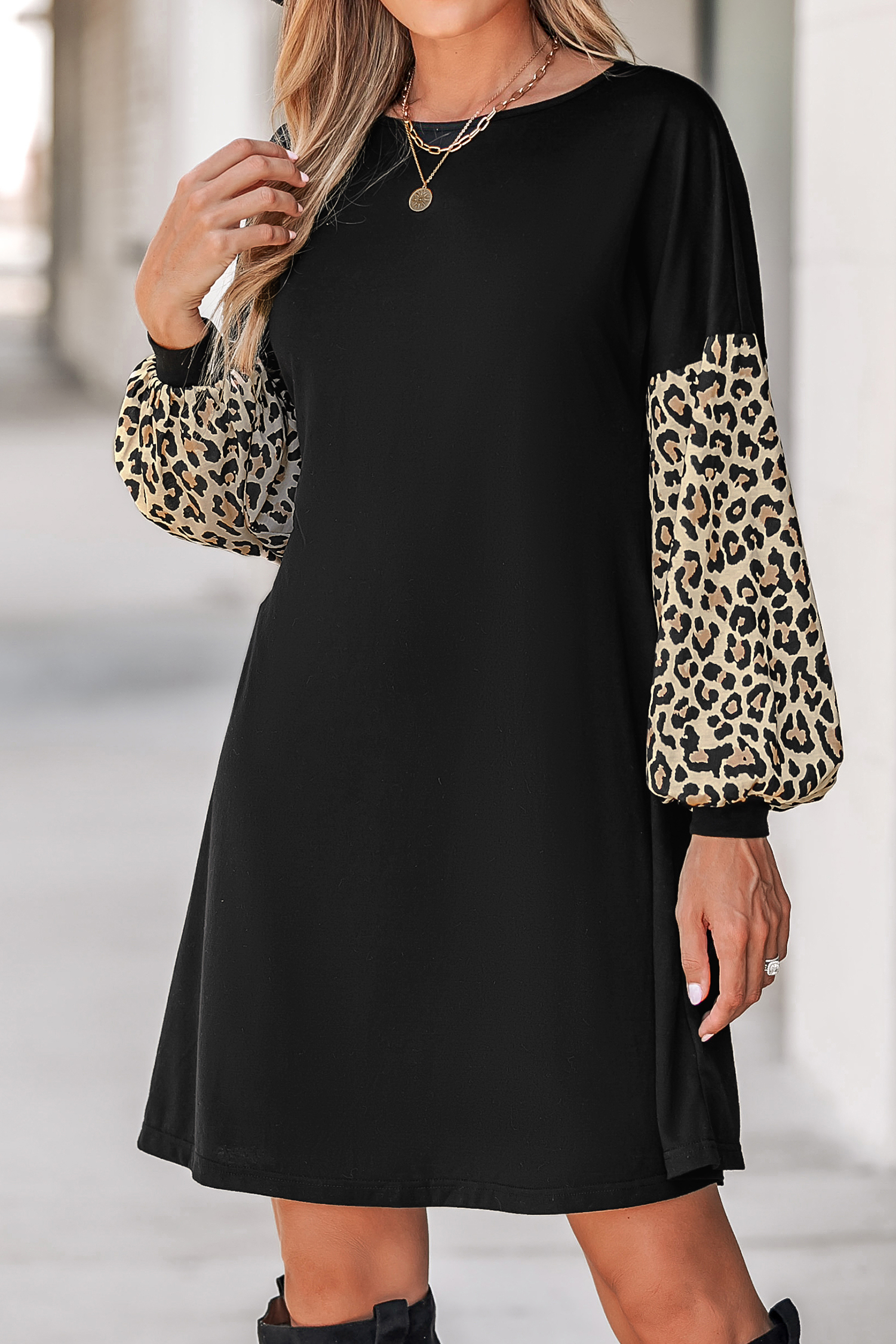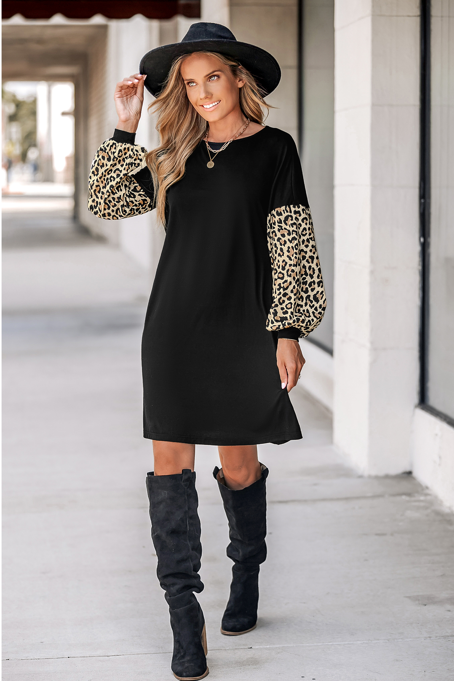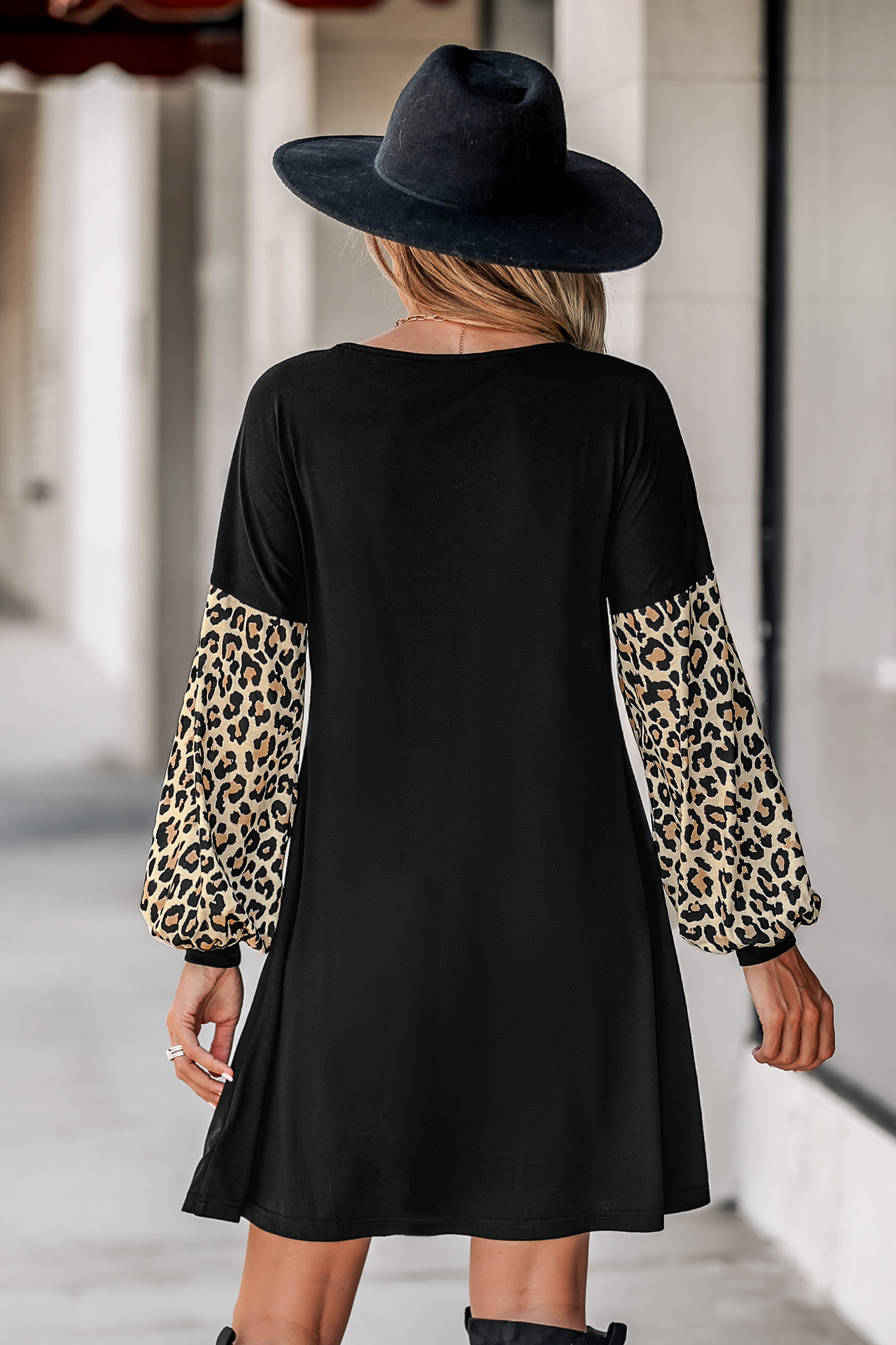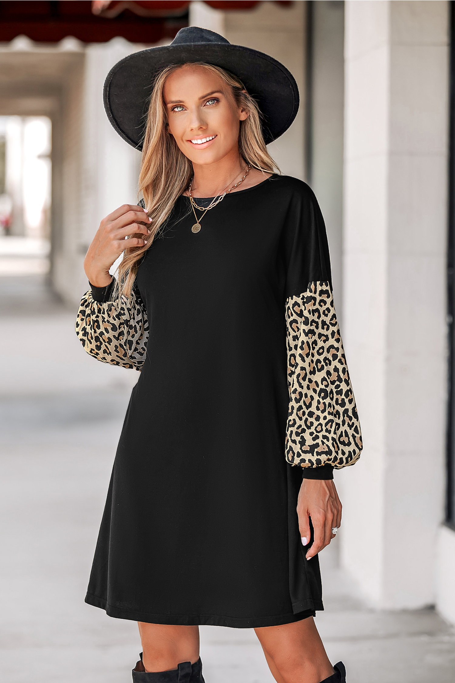 HomeLeopard Print Long Sleeve T-Shirt Dress