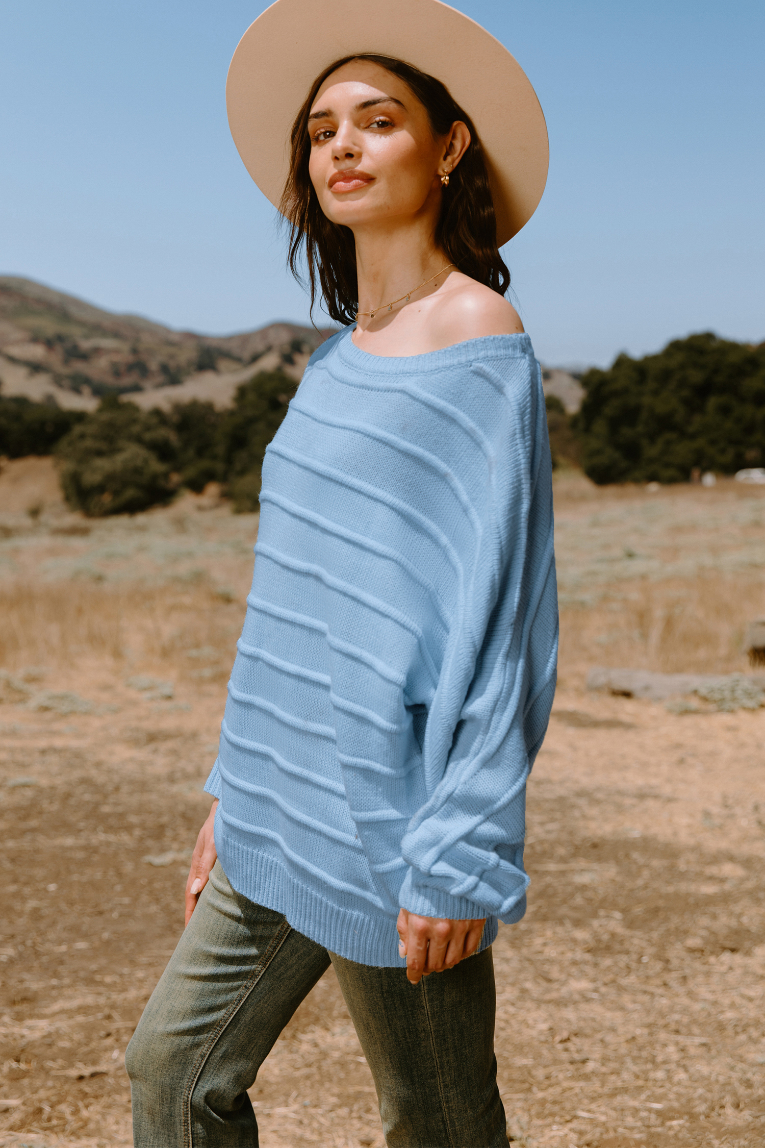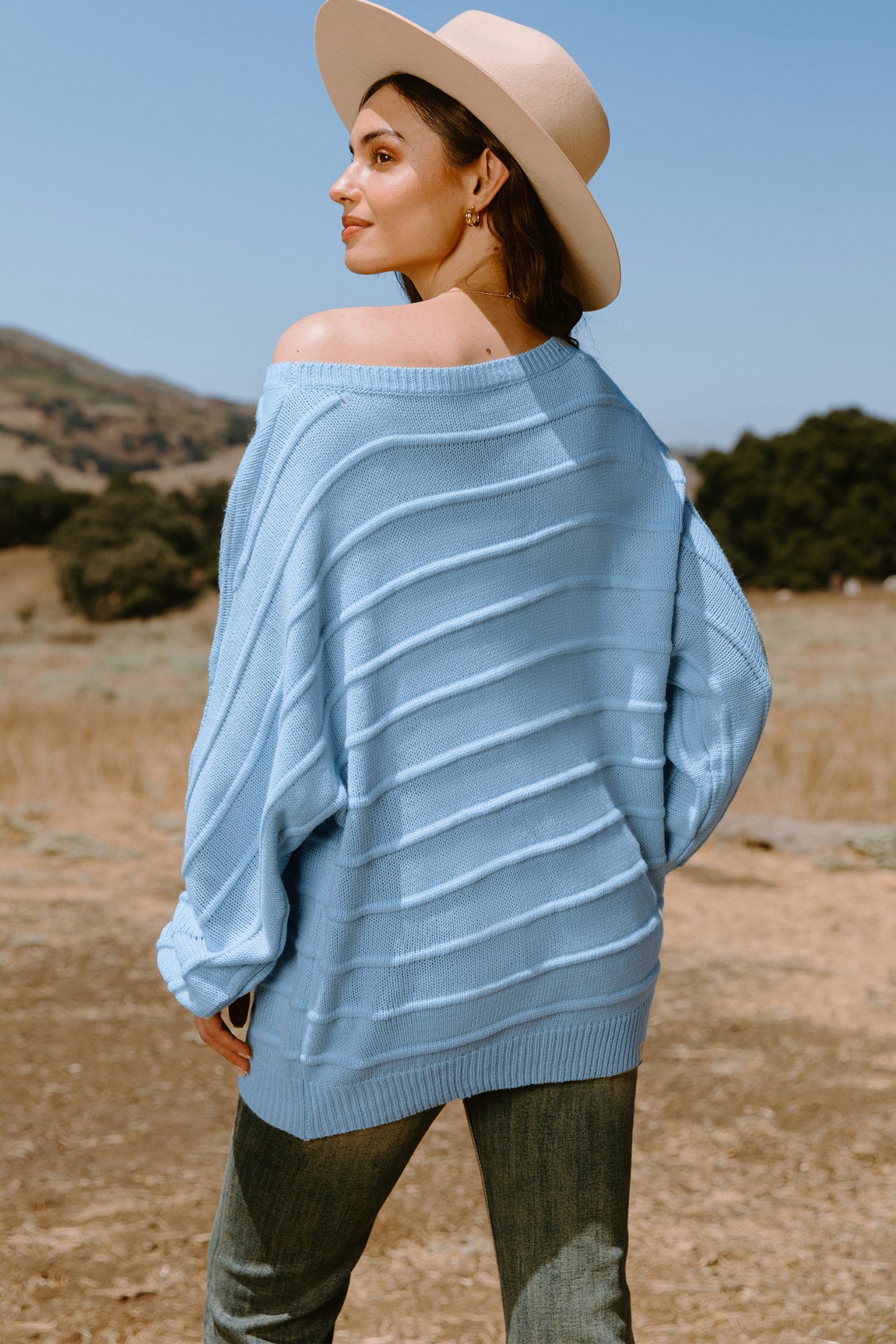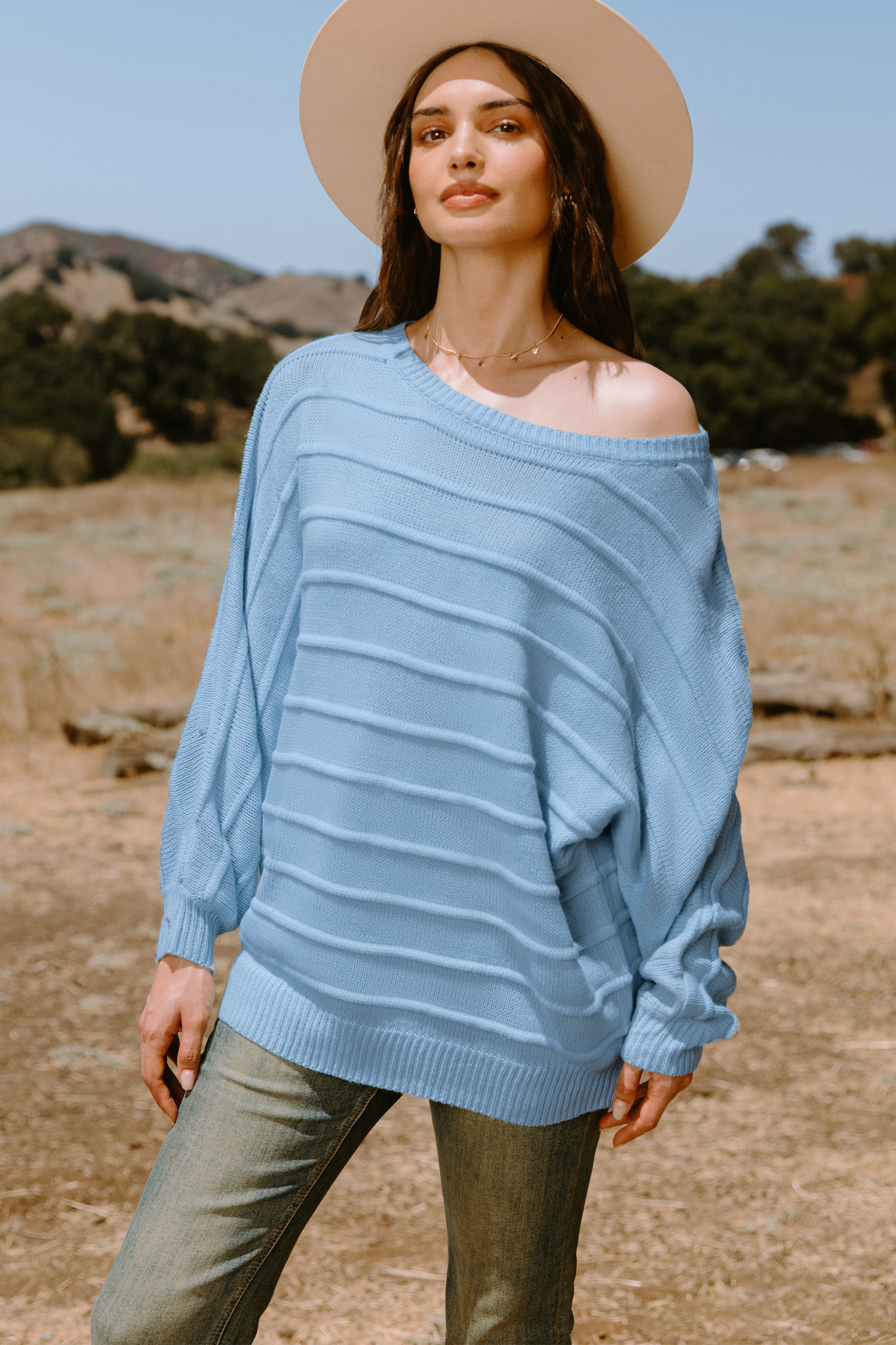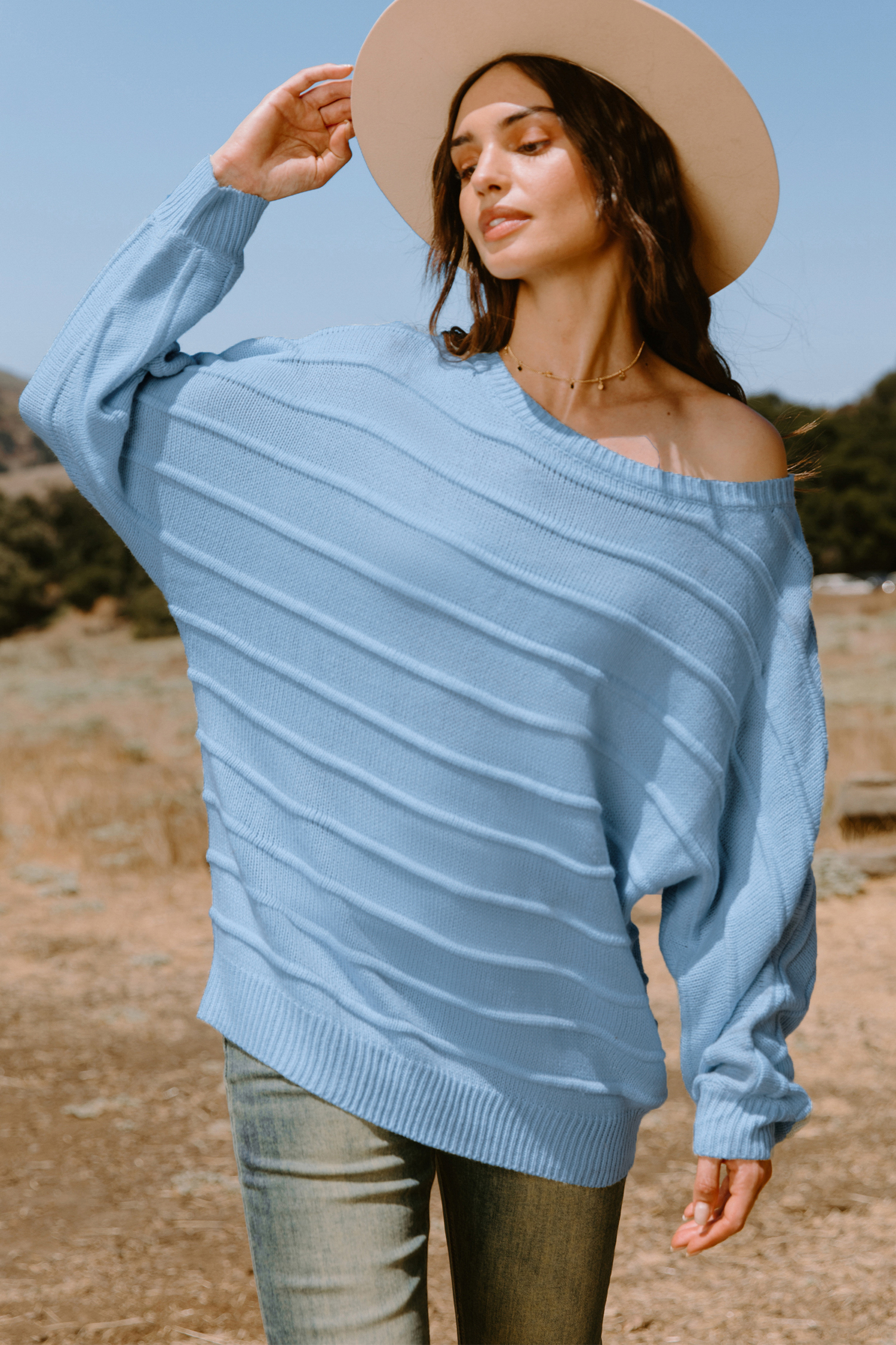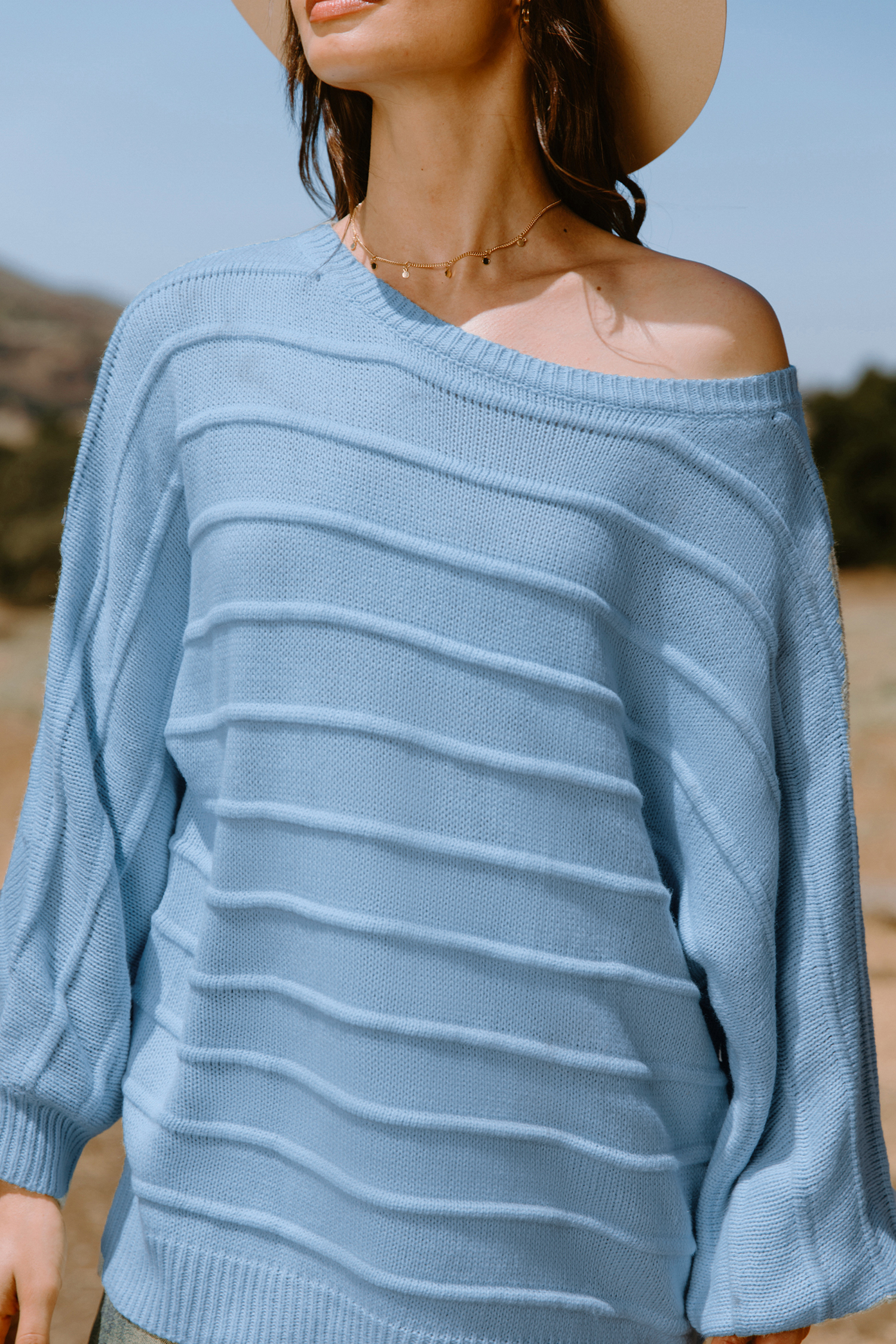 HomeLight Blue Off-Shoulder Long Sleeve Sweater