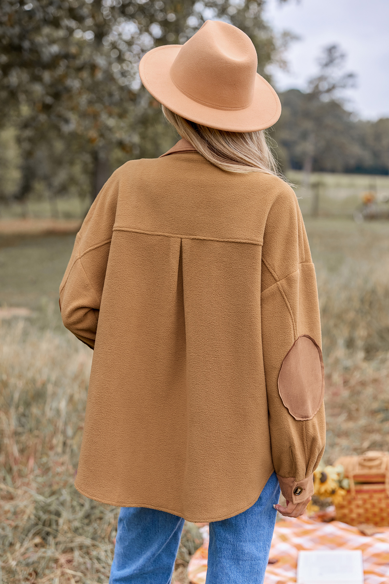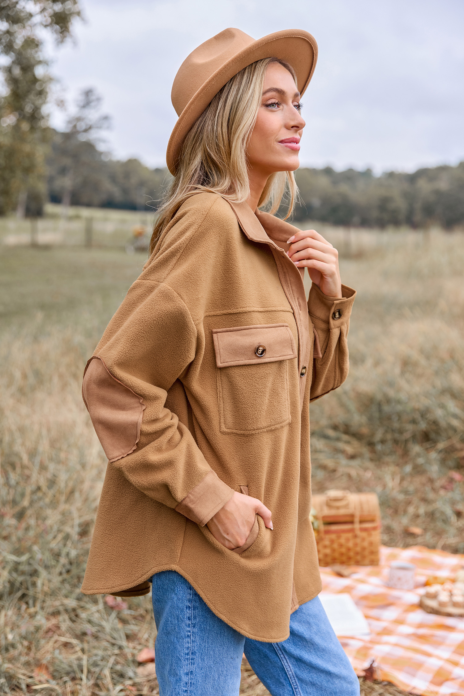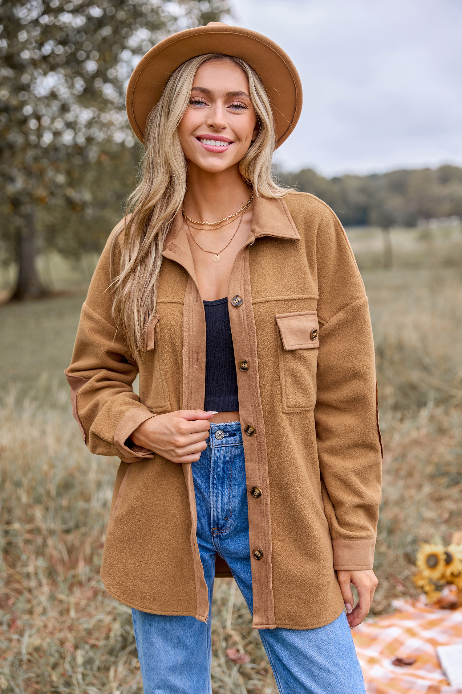 HomeLight Brown Collared Long Sleeve Button Up Shacket
