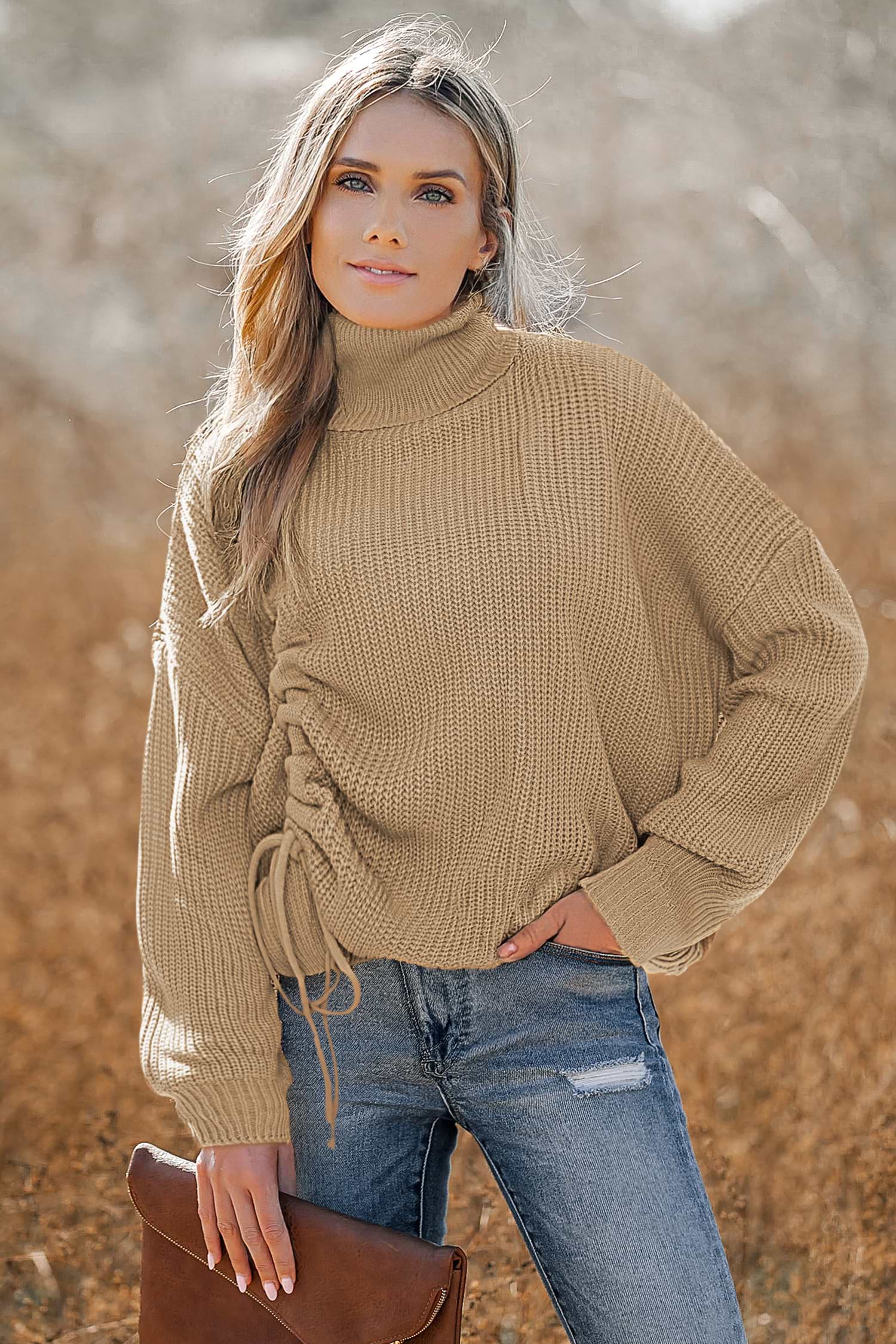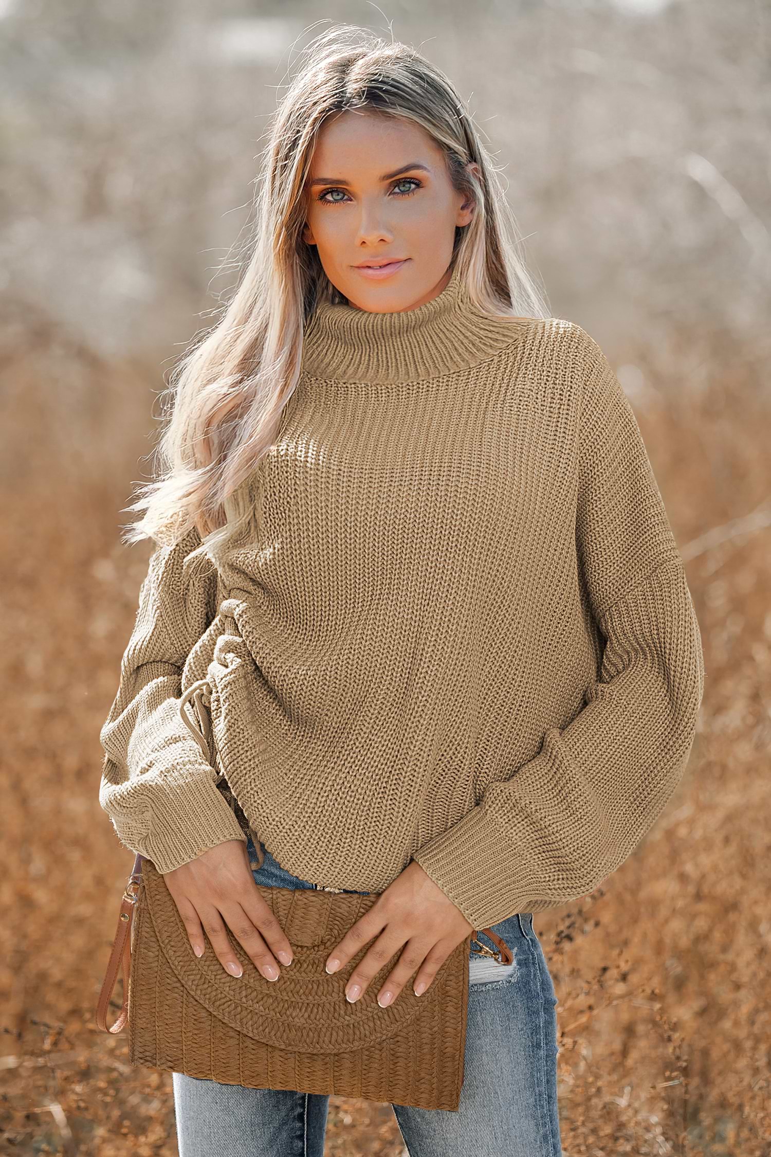 HomeLight Brown Drop Shoulder Turtleneck Sweater