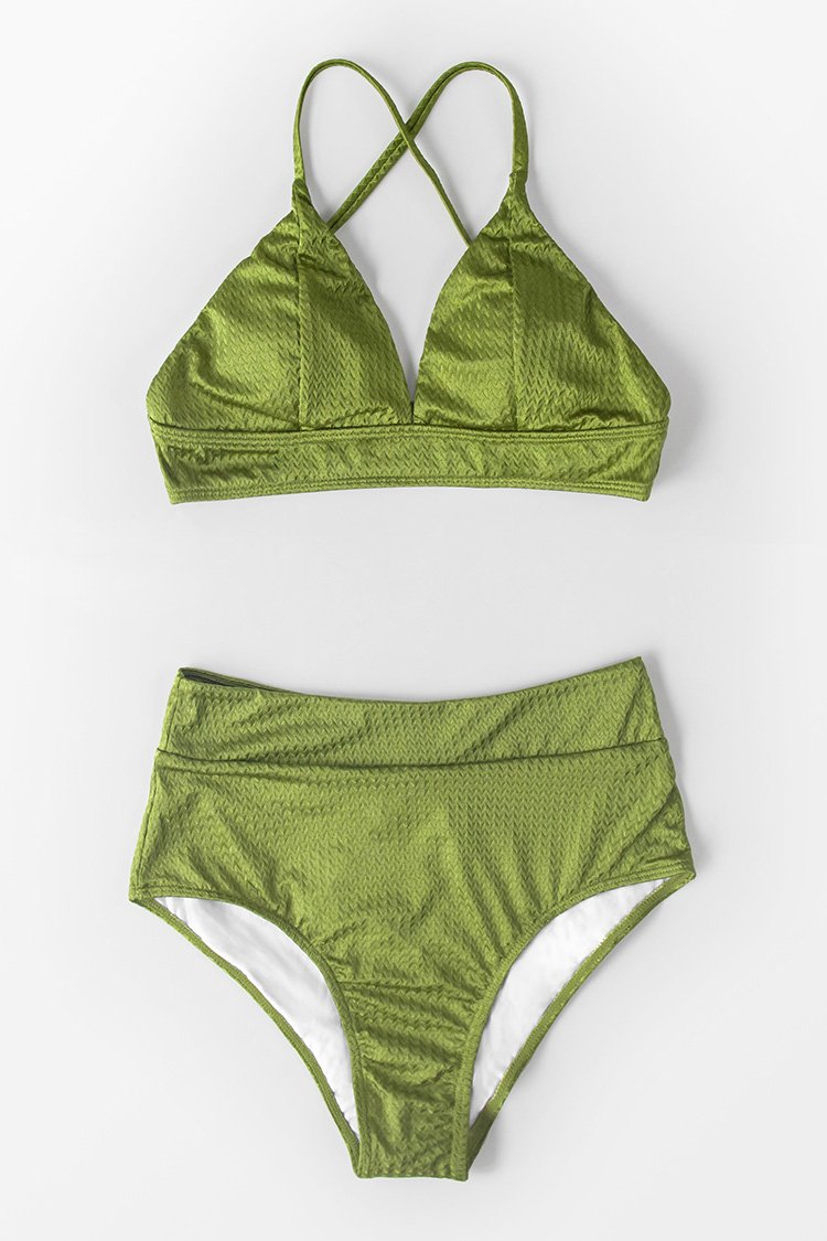 Lime Green Textured High-Waisted Bikini