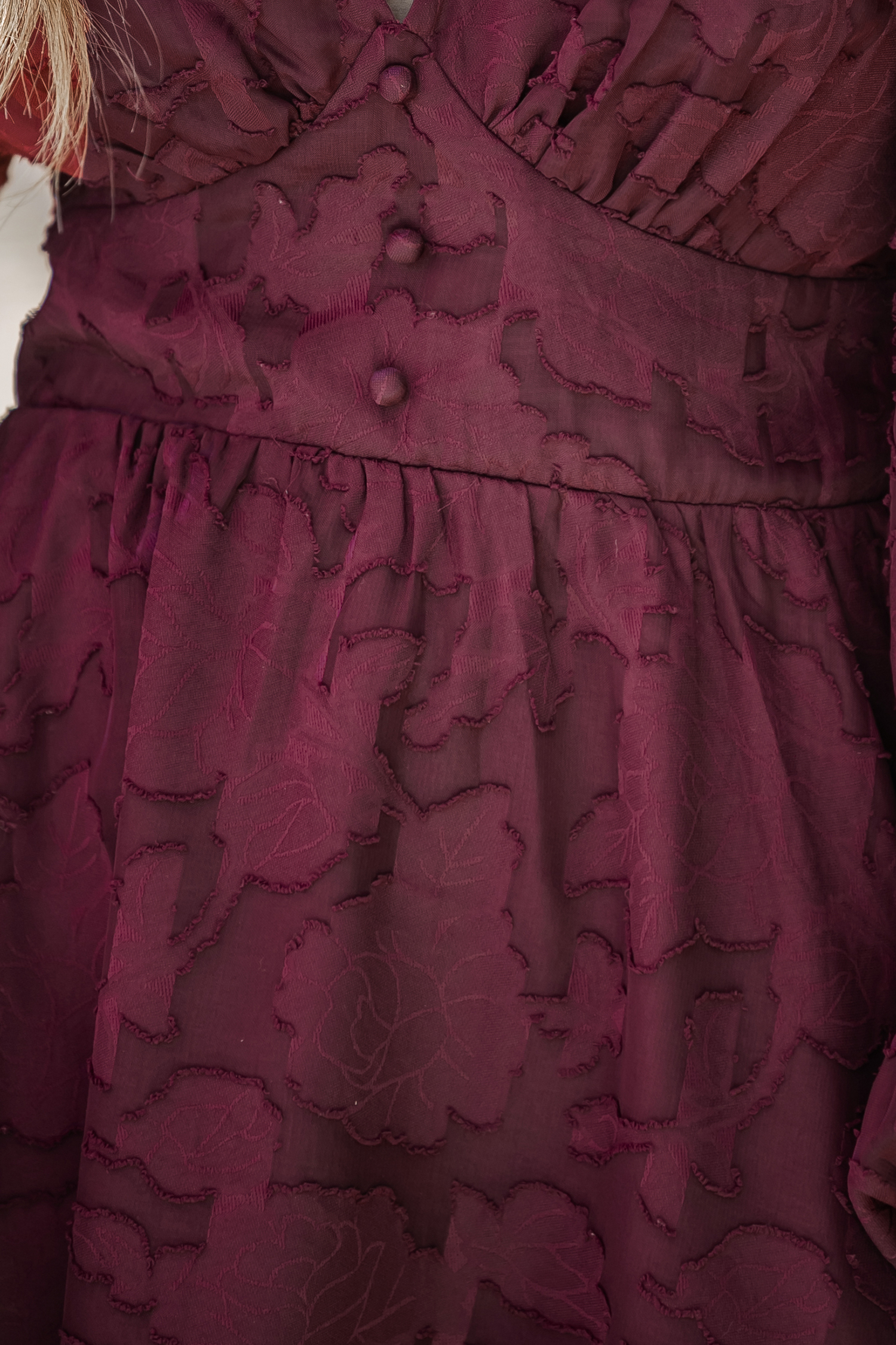 Maroon Textured Floral Lace Mini Dress