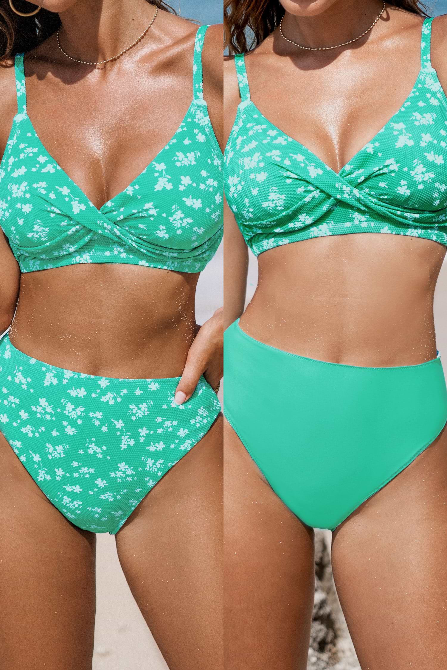 Mini Flowers Power Mesh Bikini Top & Reversible Bottoms Set