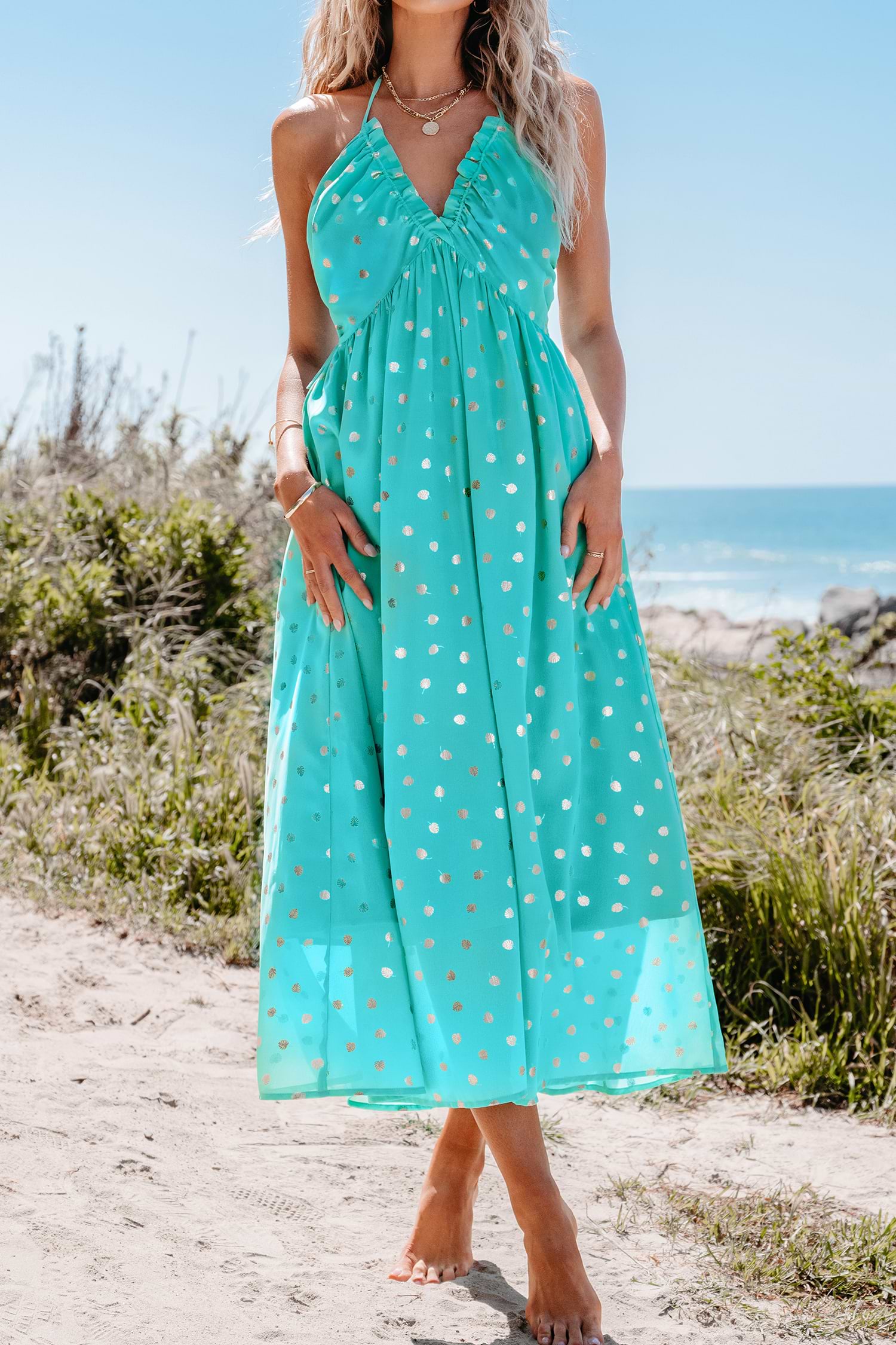HomeMint Polka Dot Halterneck Midi Dress
