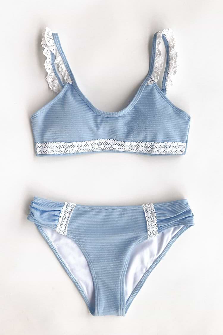 Morandi Blue Lace Bikini Top