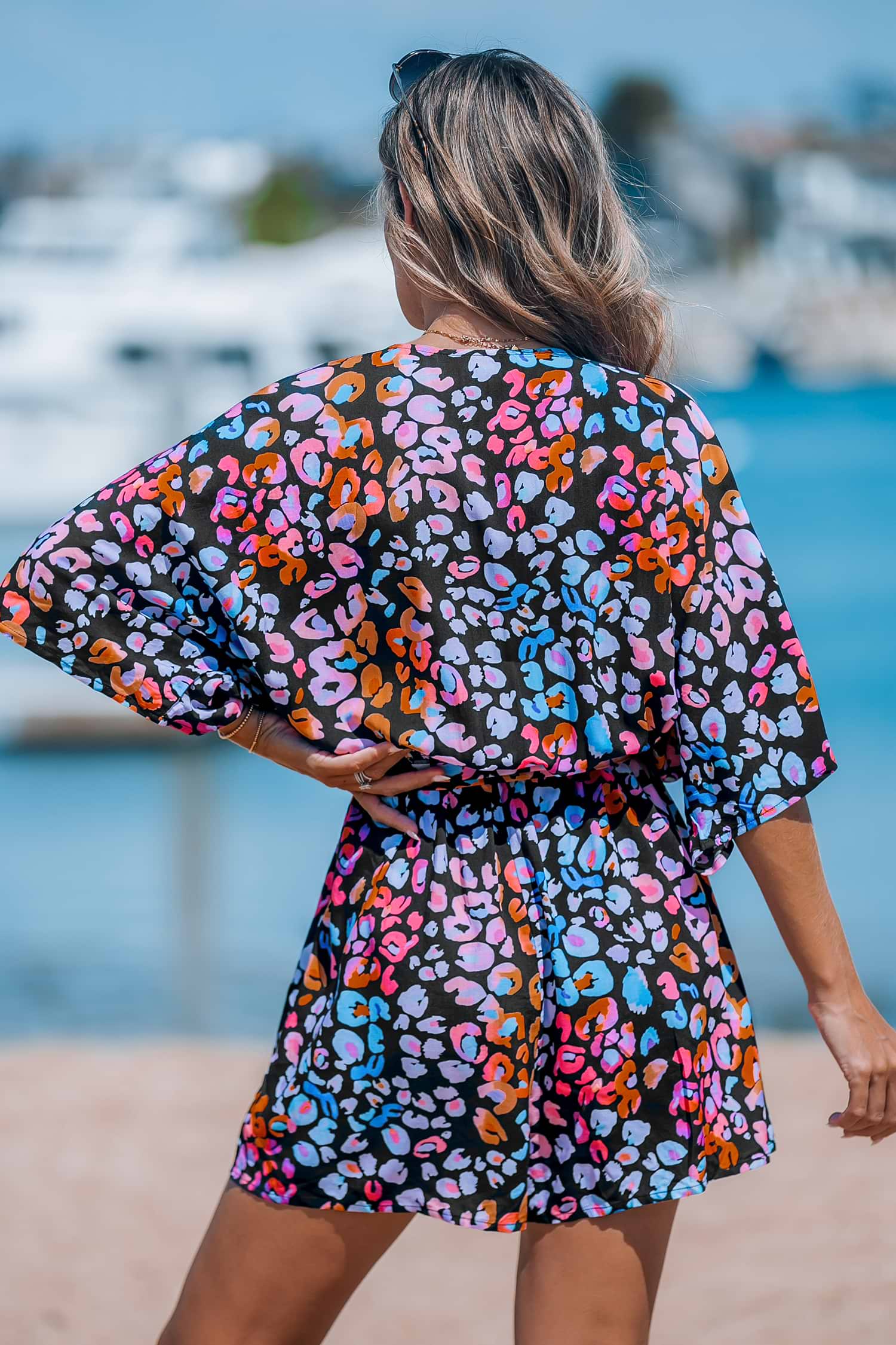 HomeMulticolored Leopard Print Lace Up Romper
