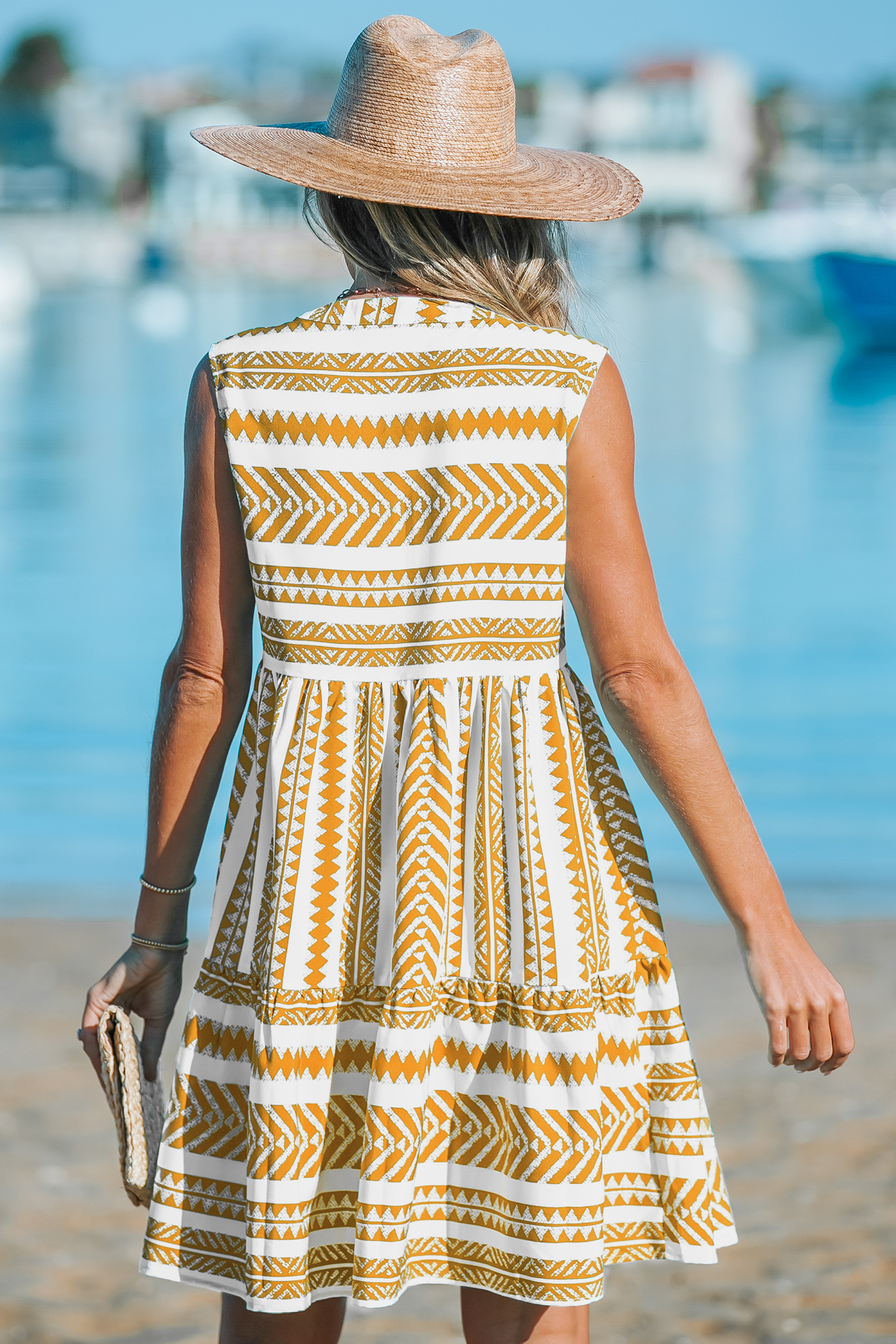 Mustard & White Geo Stripe Sleeveless Mini Dress
