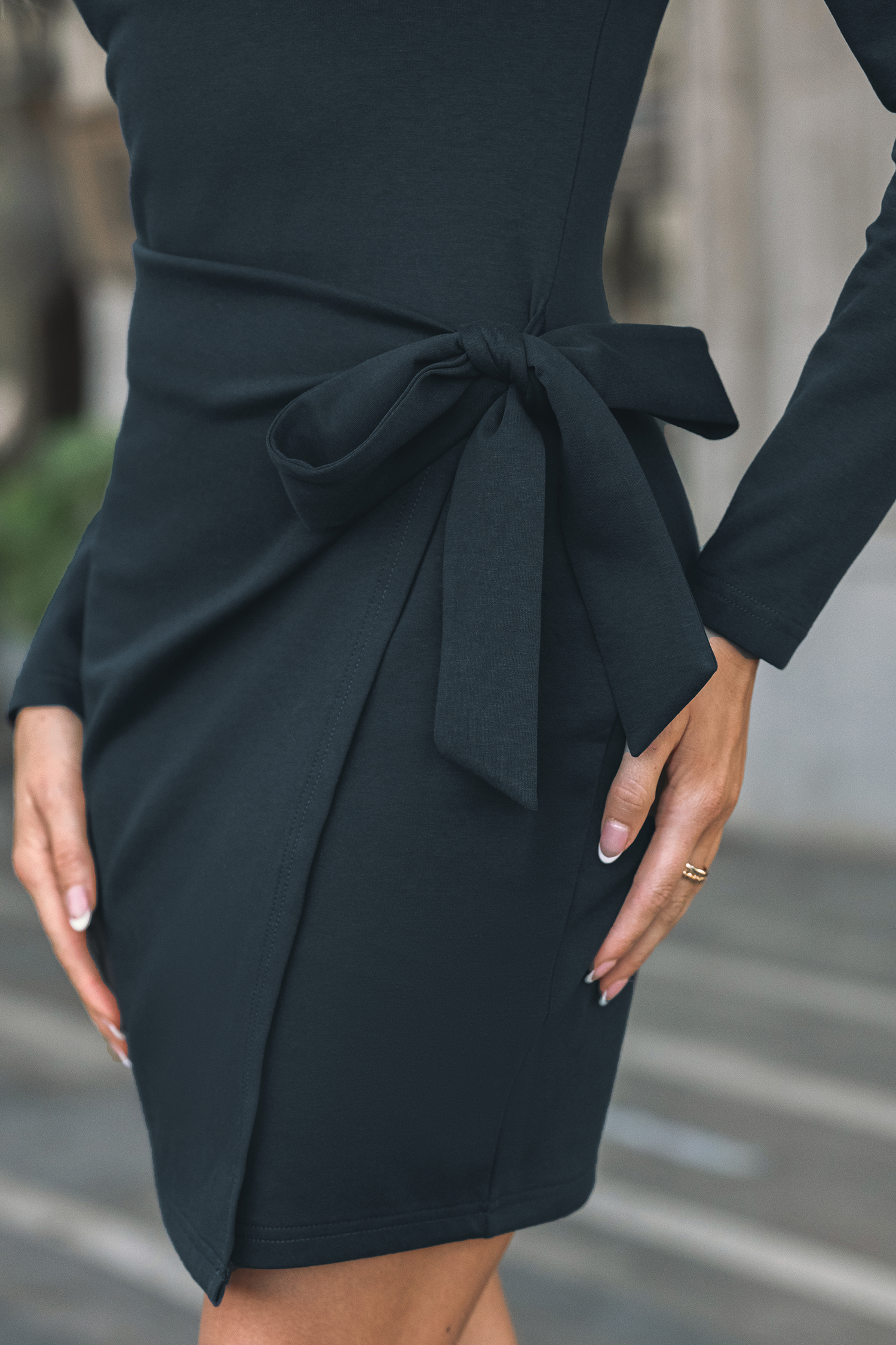 Navy Long Sleeve Wrap Skirt Mini Jersey Dress