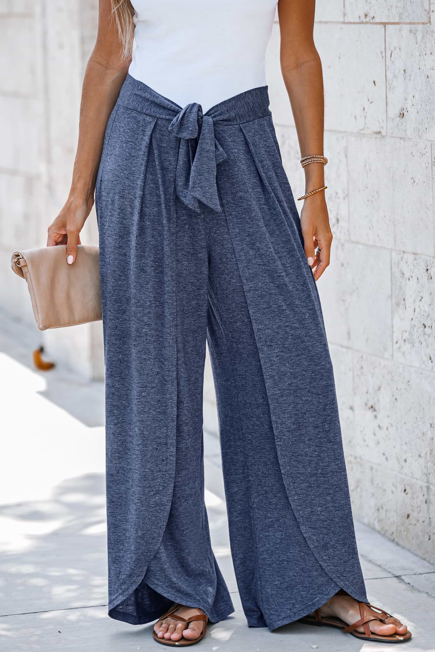 HomeNavy Tulip Hem Wide Leg Jersey Pants