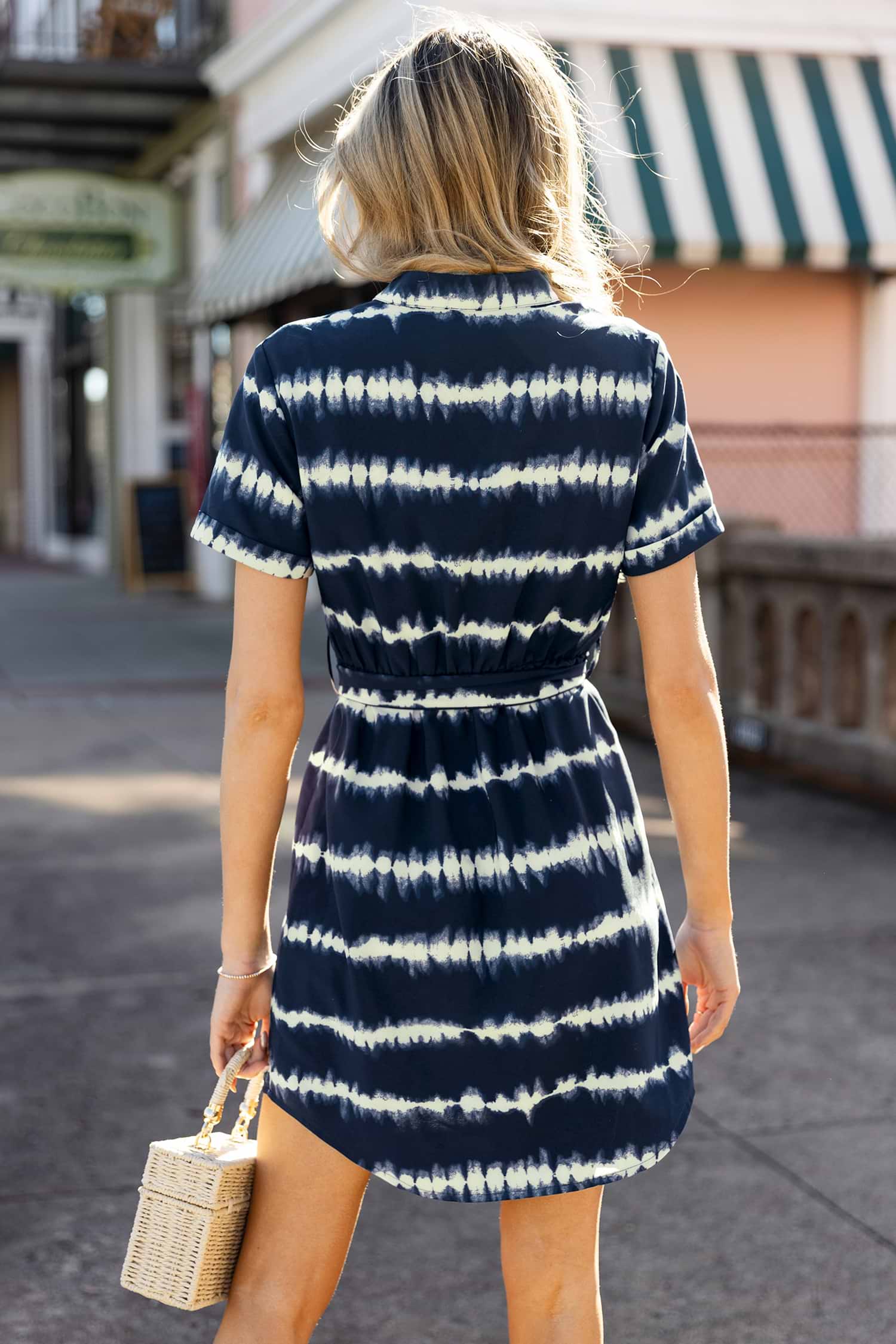 HomeNavy & White Tie Dye Stripe Mini Dress
