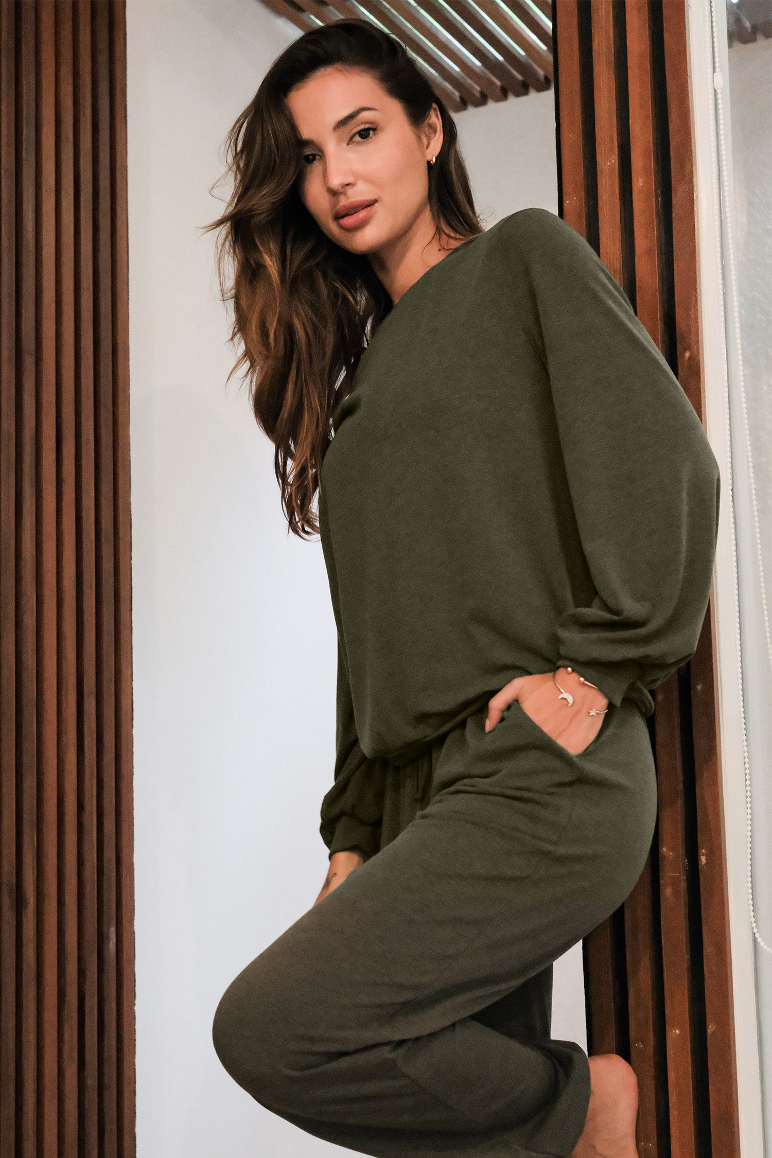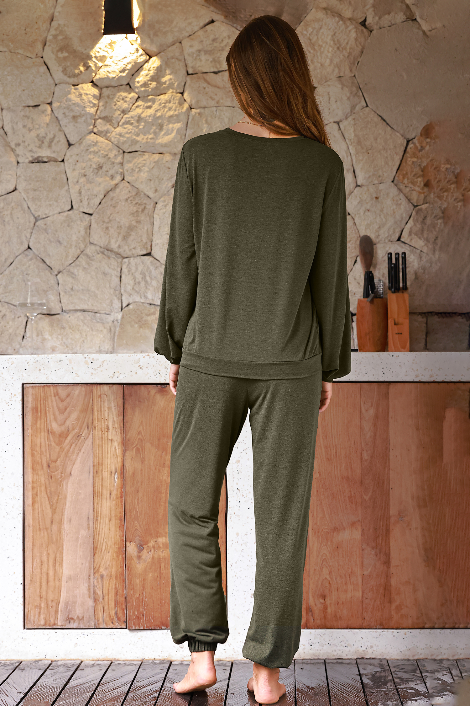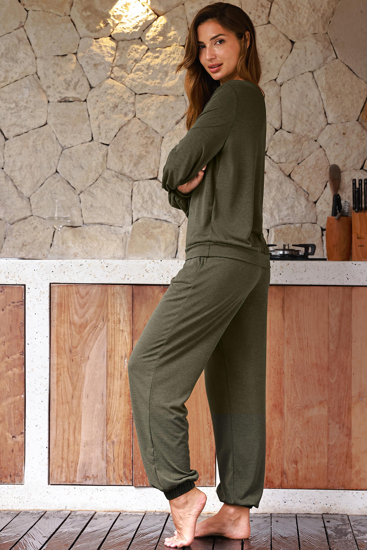 HomeOlive Green Long Sleeve Top & Tapered Pajama Bottoms Set