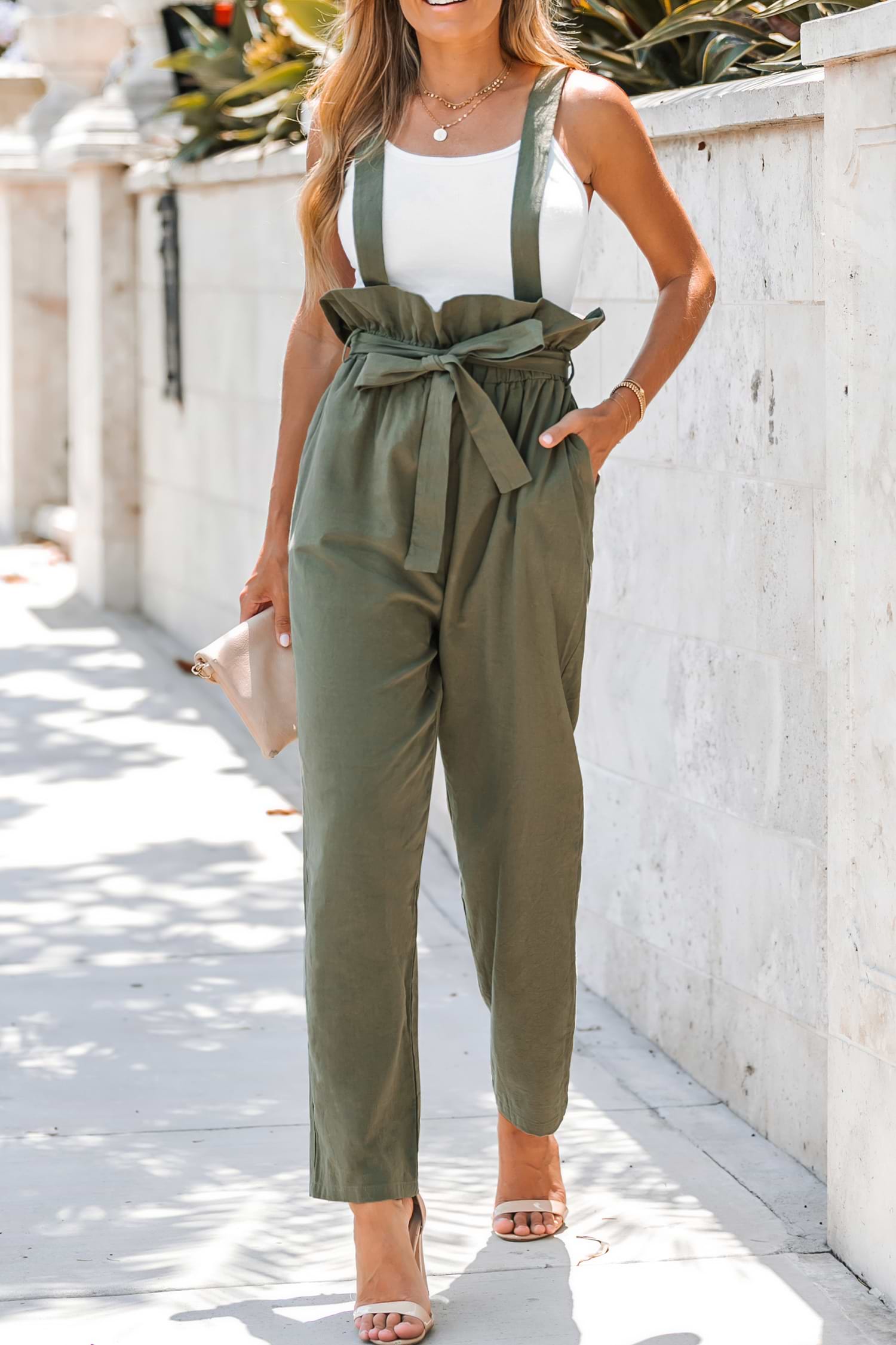 HomeOlive Green Ruffled Belted Paperbag Overalls