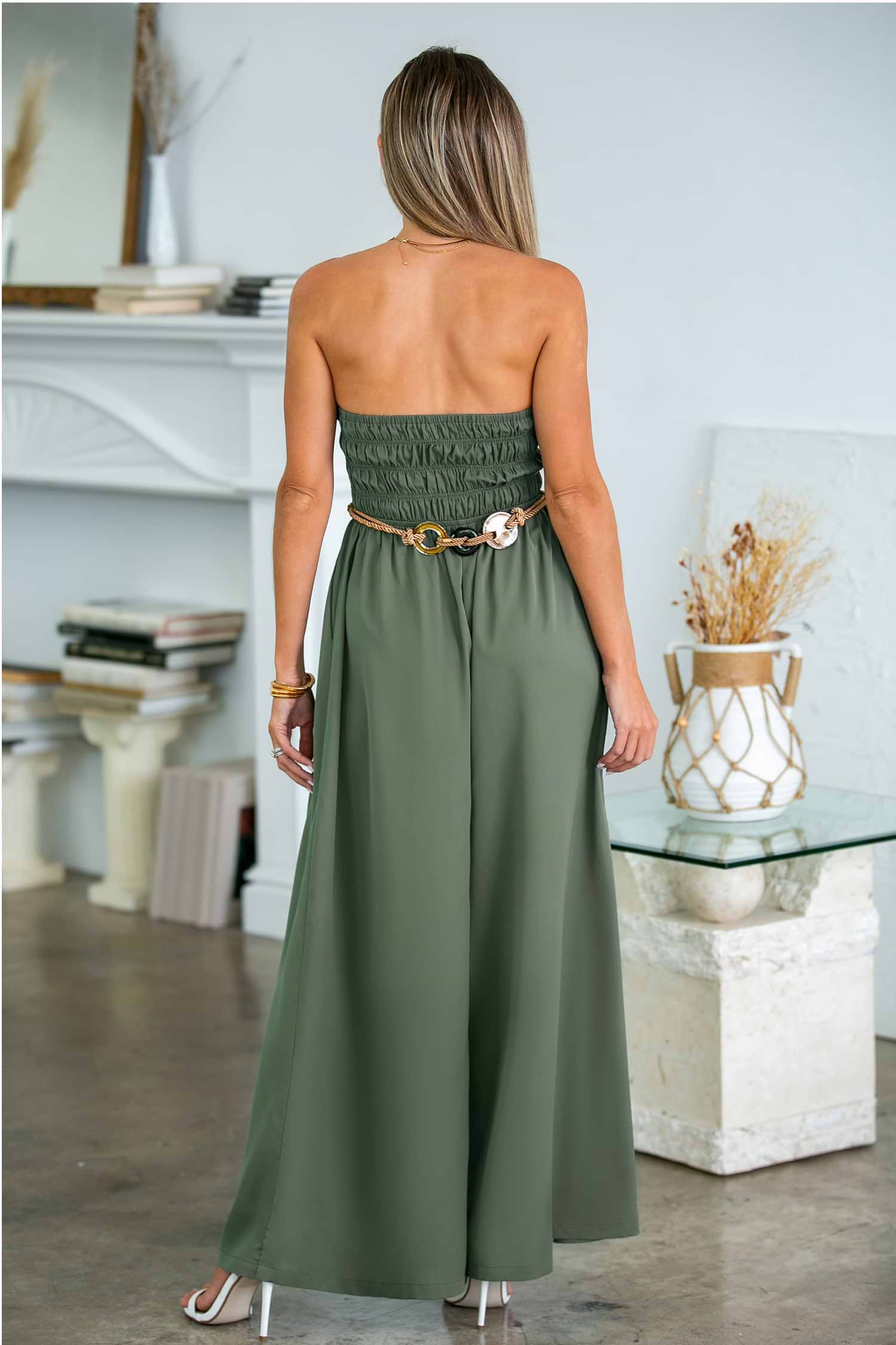 Olive Green Smocked Waist Wide Leg Jumpsuit
