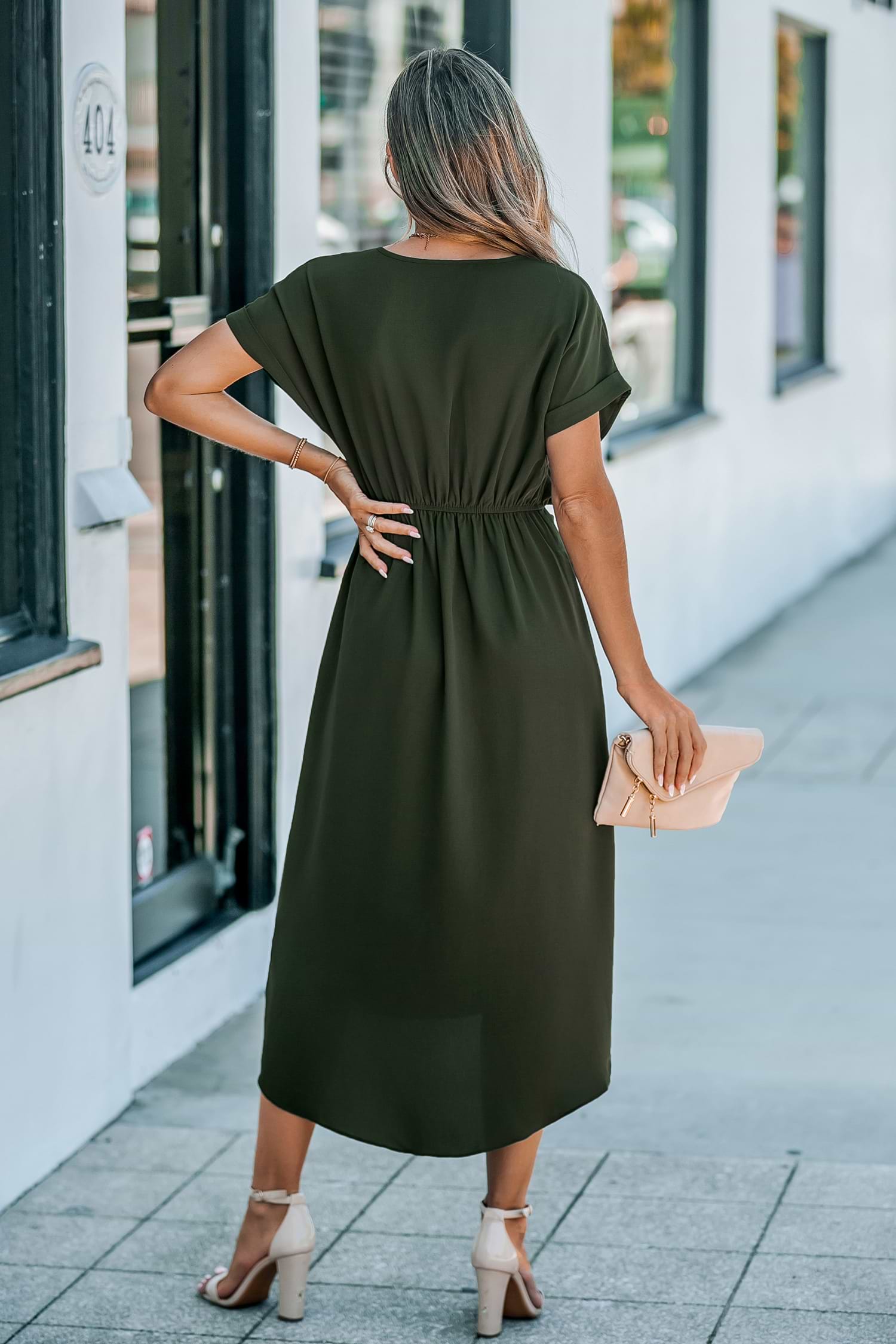 HomeOlive Short Sleeve Waist Wrap Midi Dress