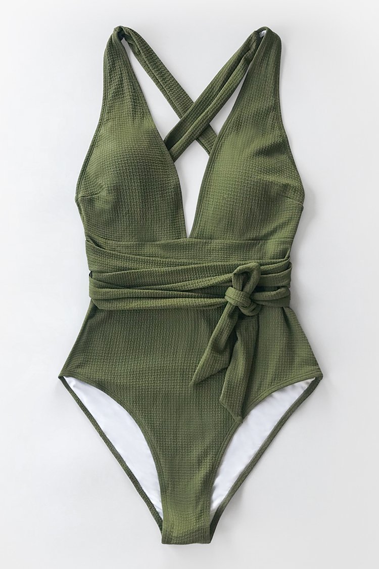 Olive Textured One-Piece Swimsuit
