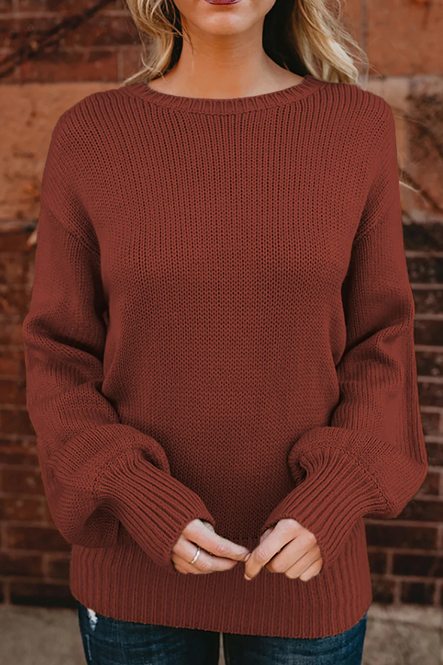 HomeOn Vacay Ribbed Lantern Sleeve Sweater