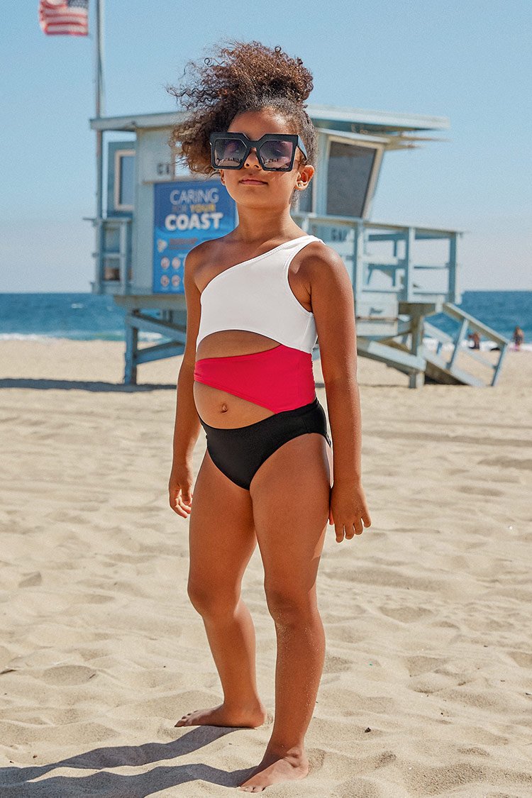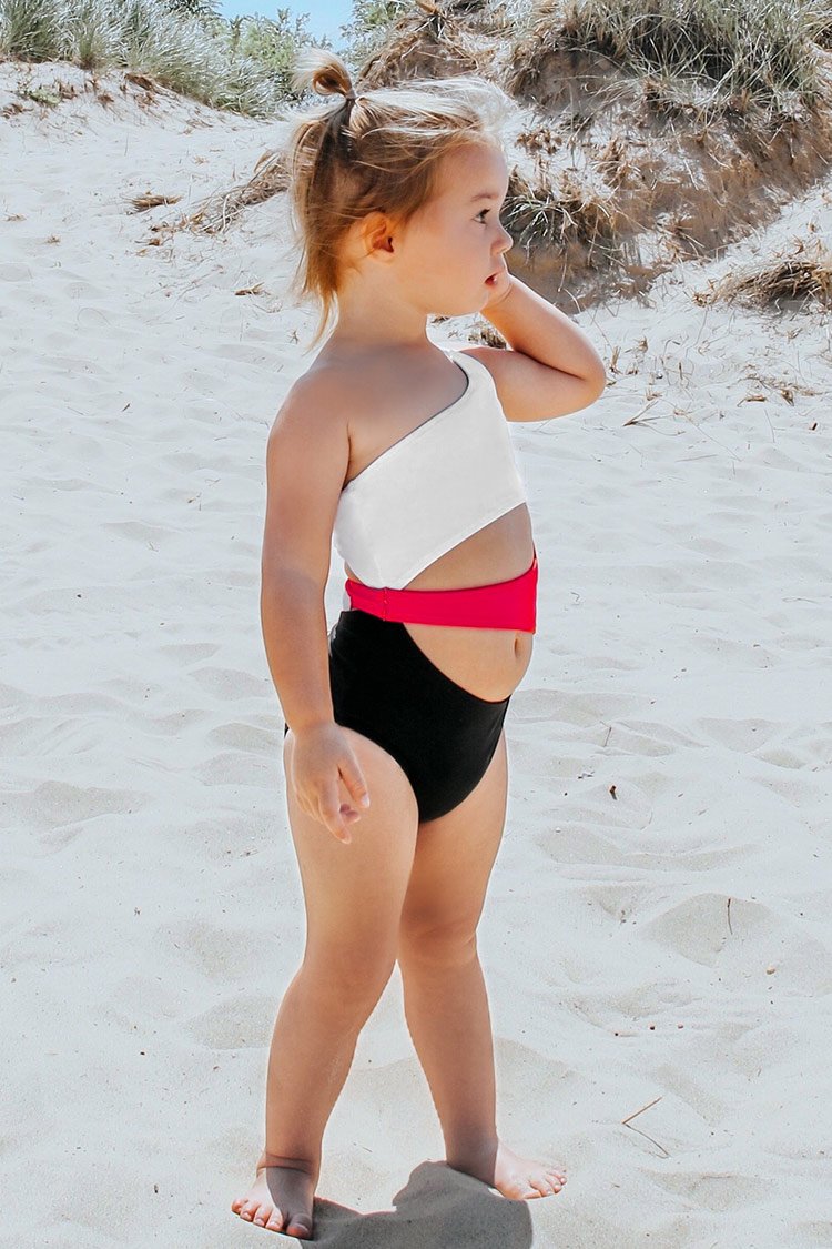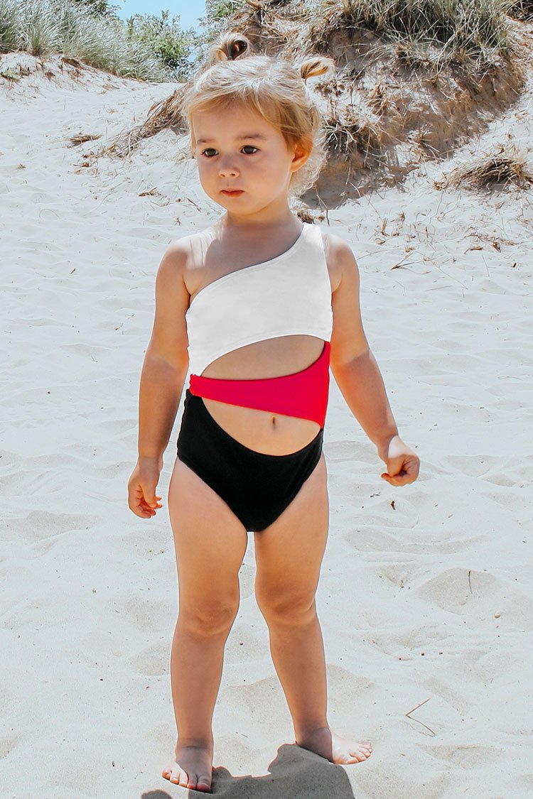 One Shoulder Cutout One Piece Swimsuit For Toddler Girls and Girls
