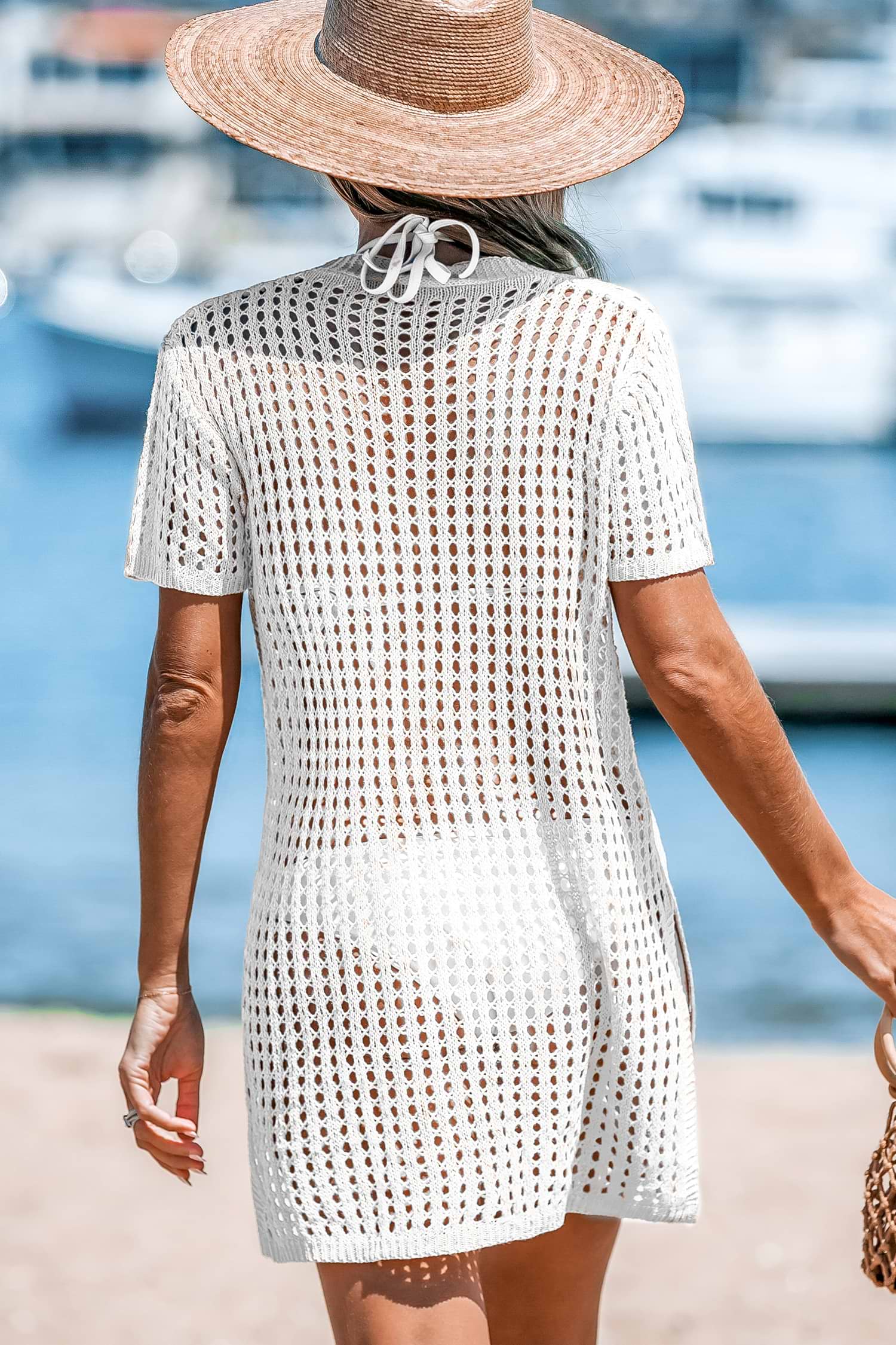 Open Knit Front Button Patch Pocket Cover-Up Dress