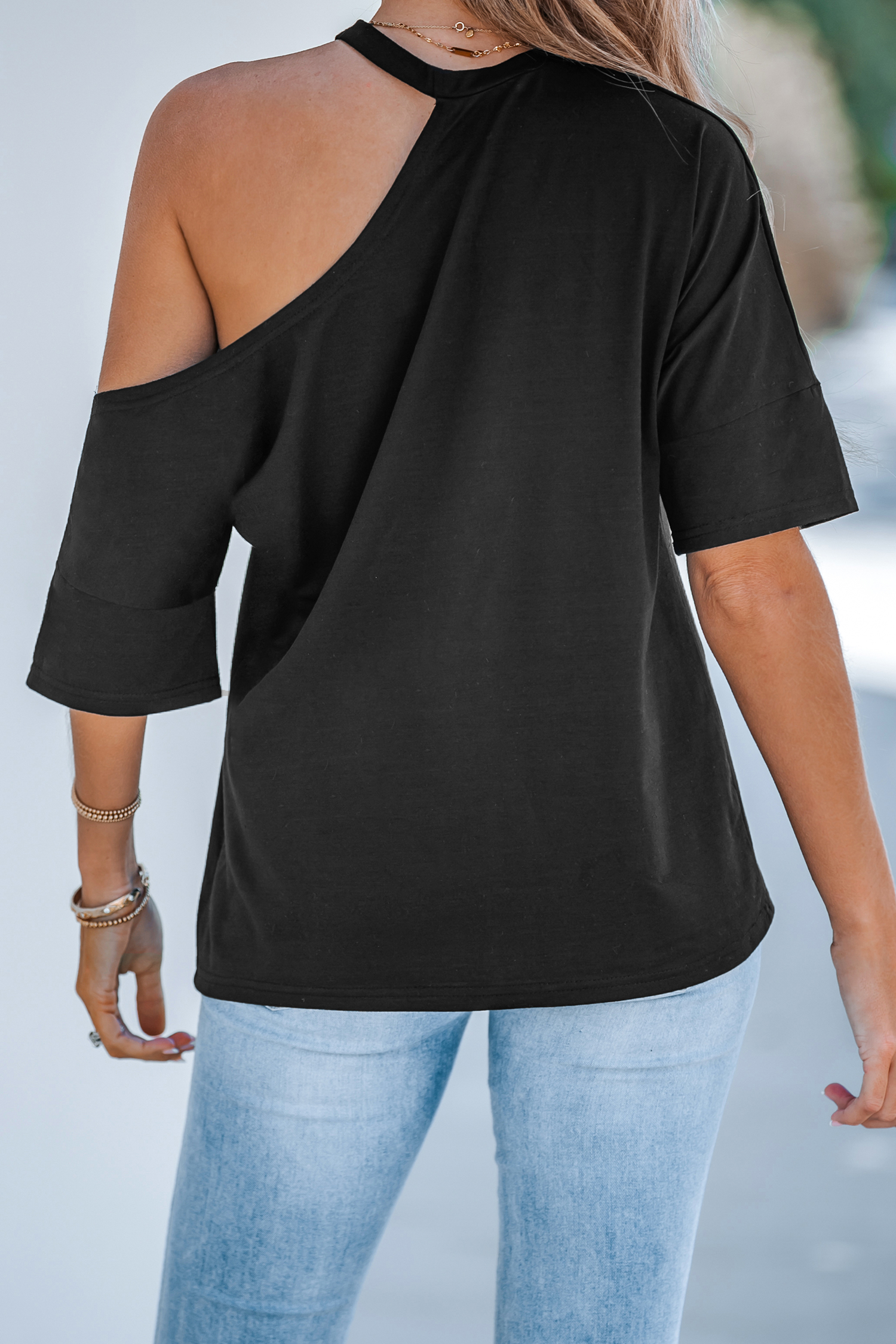 Open-Shoulder Short Sleeve Tee