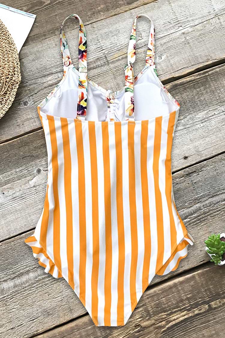 HomeOrange Floral and Stripe One-Piece Swimsuit
