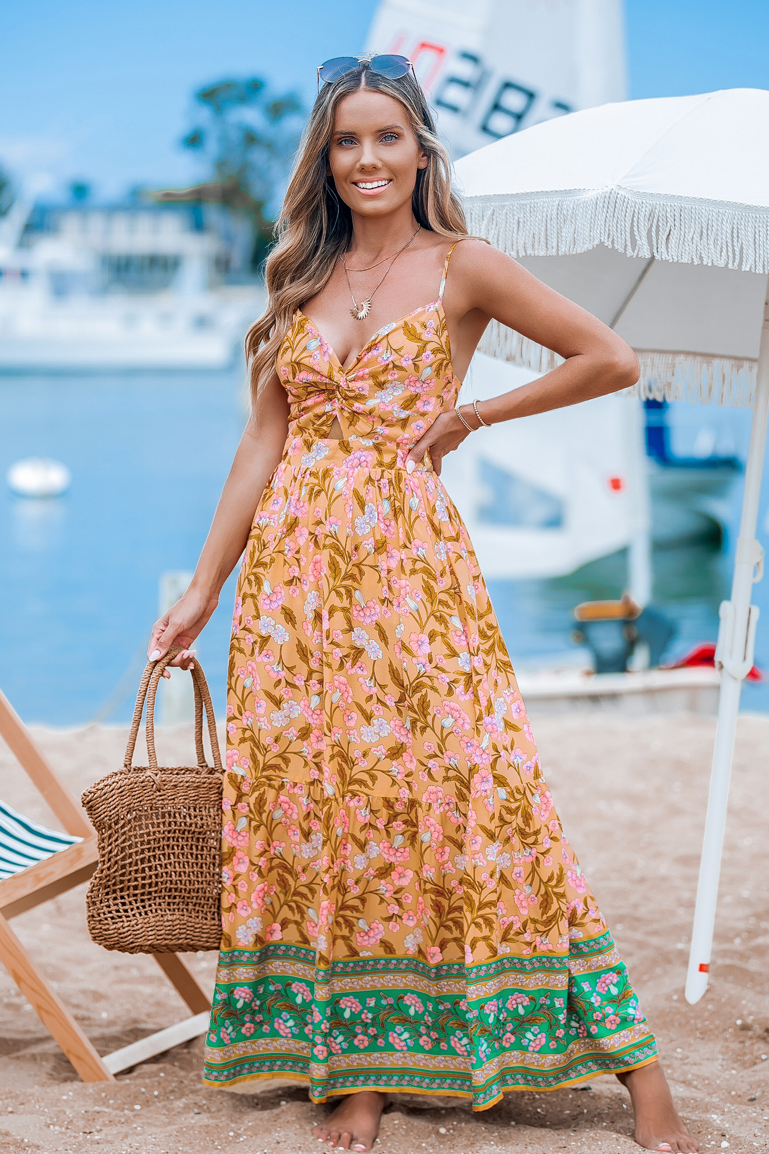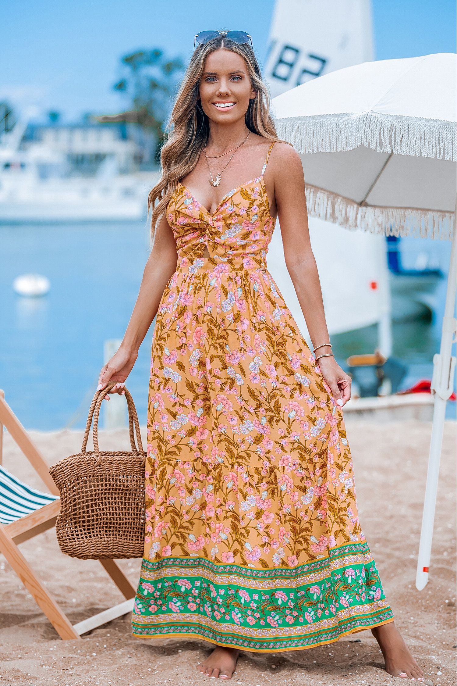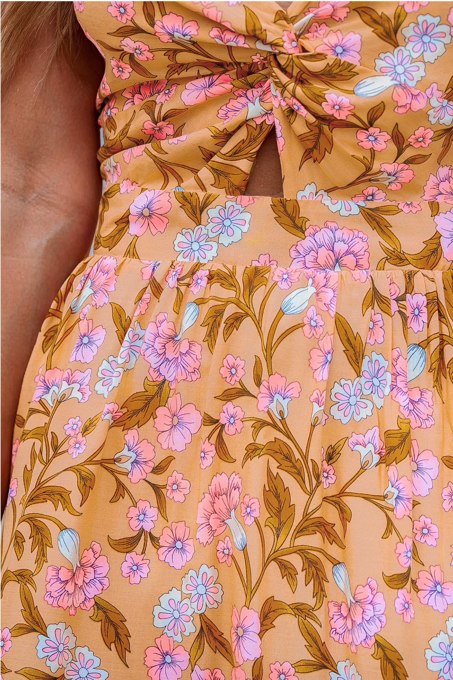 HomeOrange Floral Sweetheart Twist & Keyhole Maxi Dress
