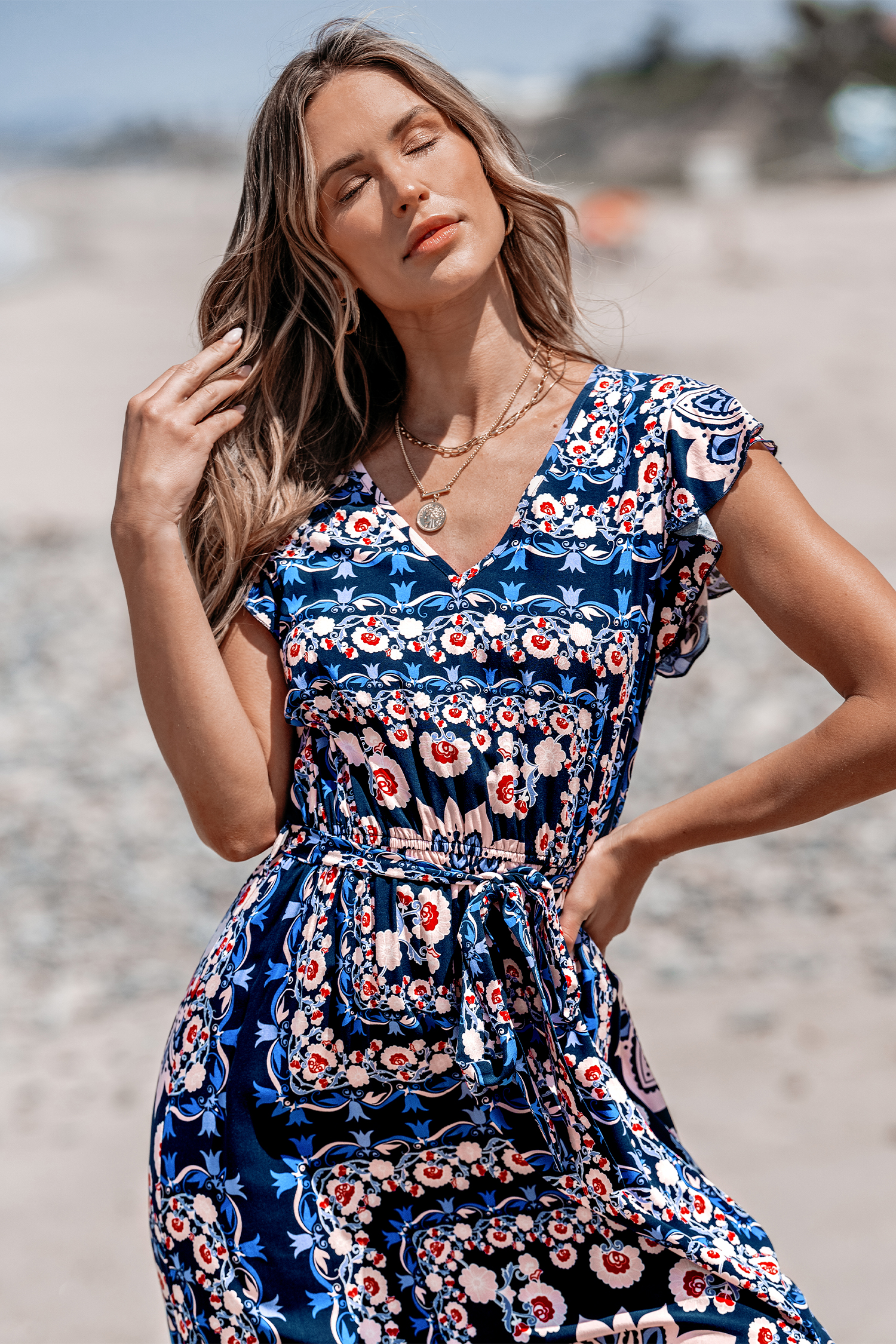 Ornate Floral Print Maxi Dress