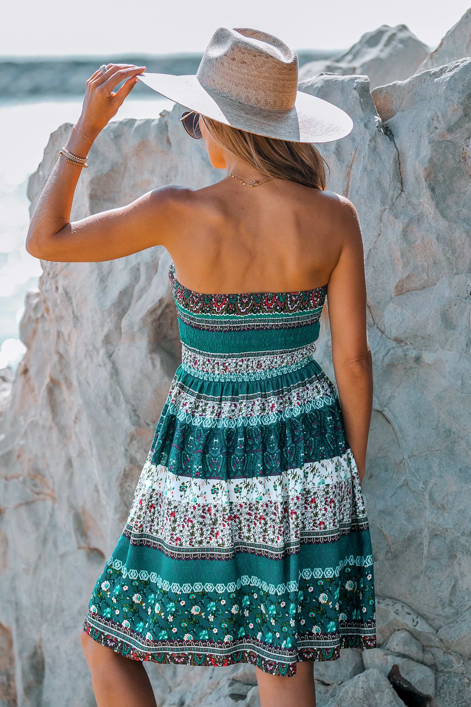 Paisley Print Smocked Tube Dress