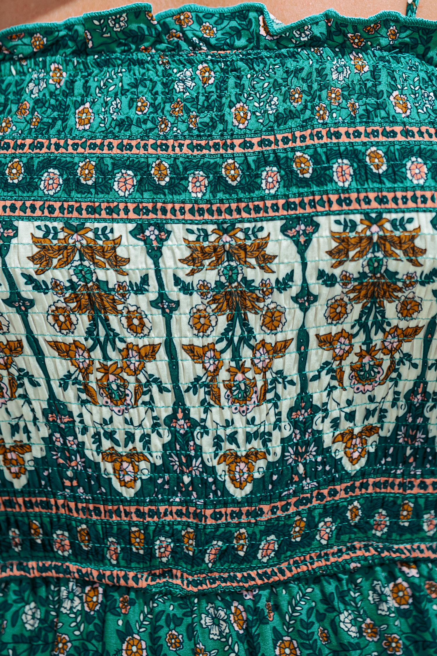 Paisley Print Smocked Wide-Leg Jumpsuit