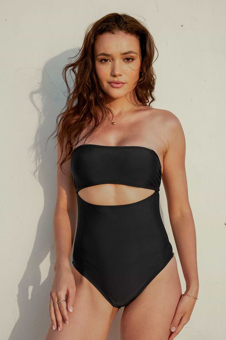 Passion Cutout Bandeau Black One Piece Swimsuit