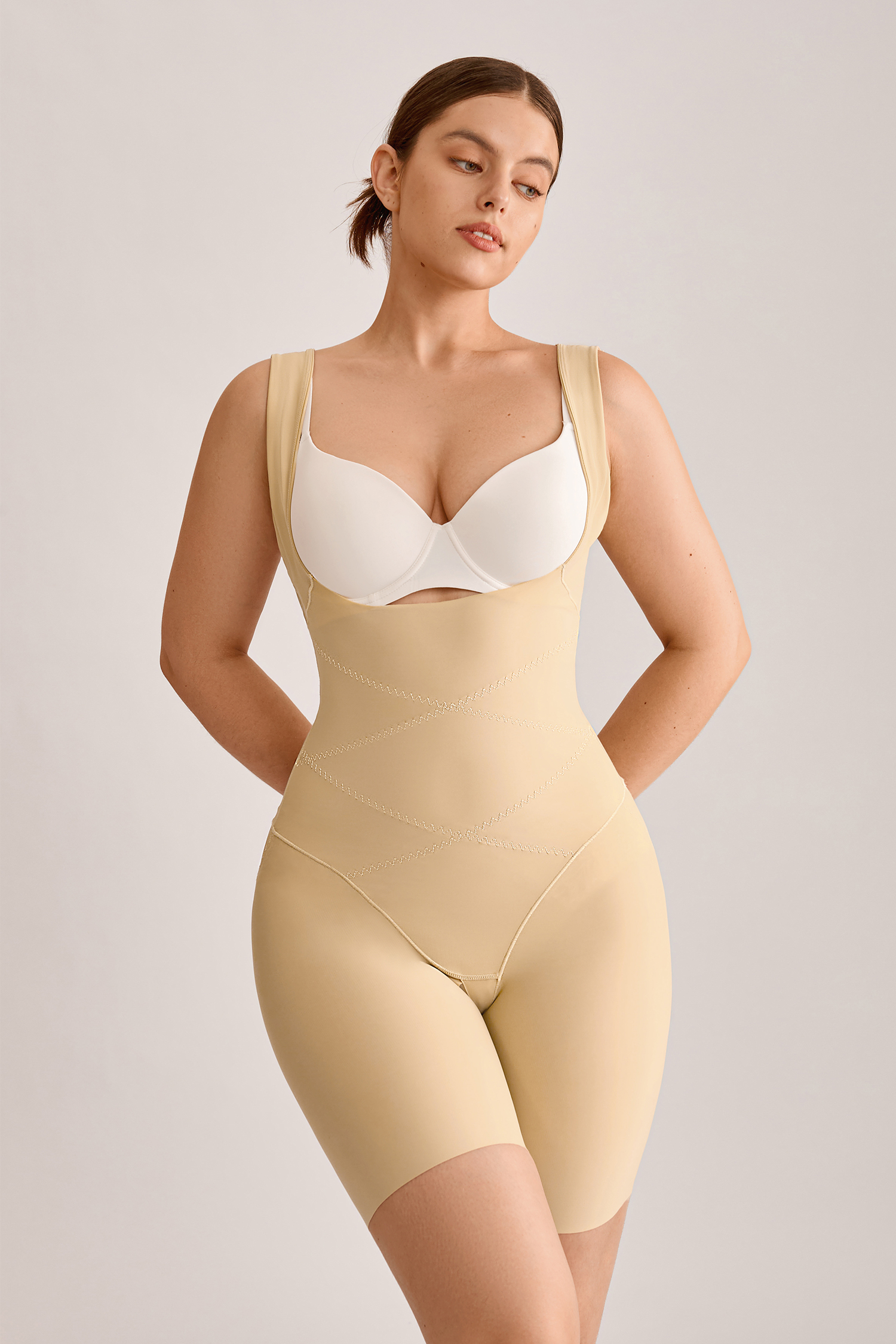 The Perfect Harmony Nude Shapewear Bodysuit blends smooth shaping with effortless comfort! Featuring wide straps and a flattering V-neckline, it offers medium compression that sculpts your figure while feeling soft and natural all day.